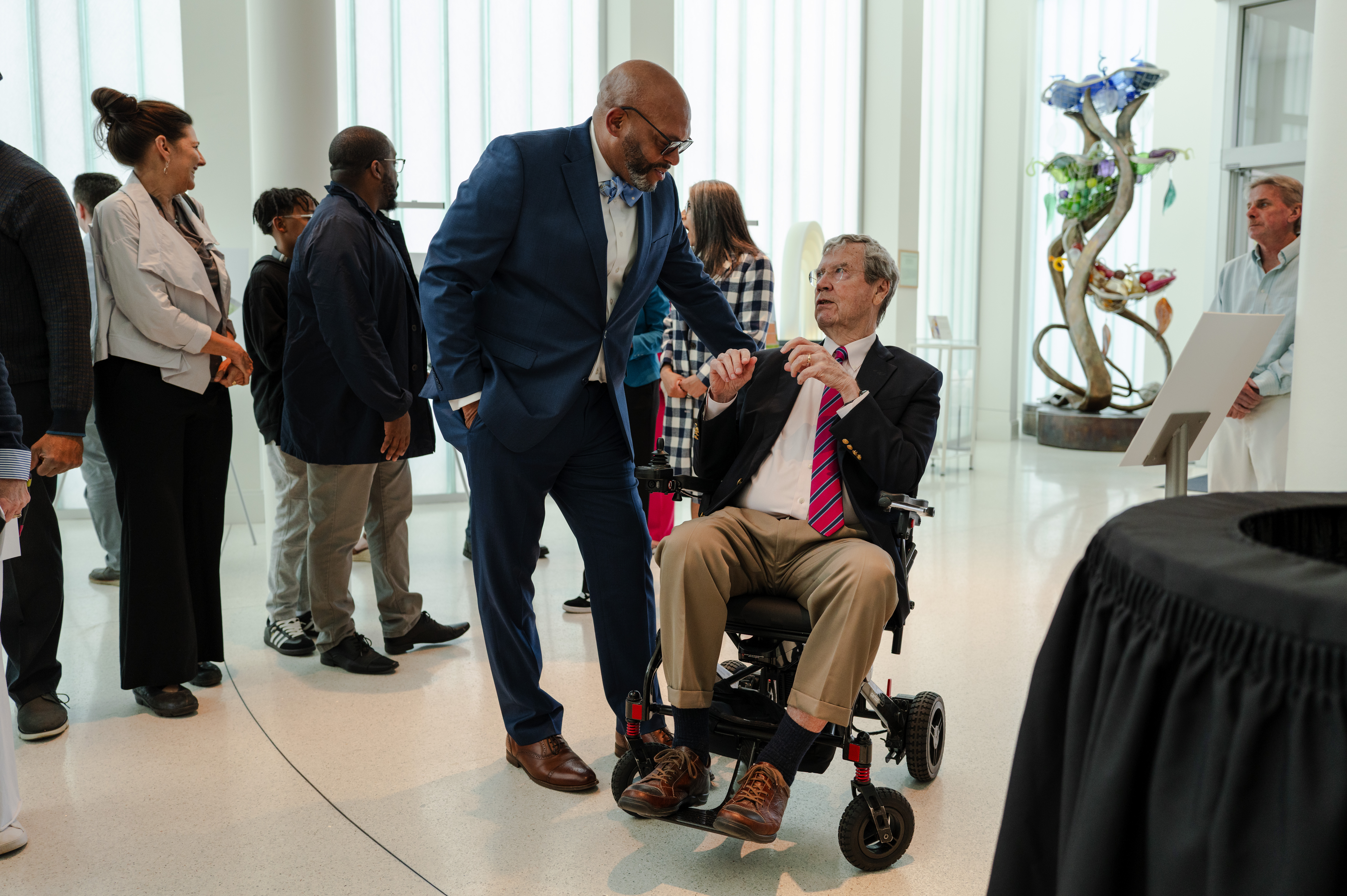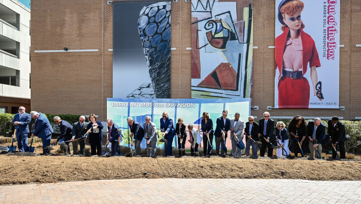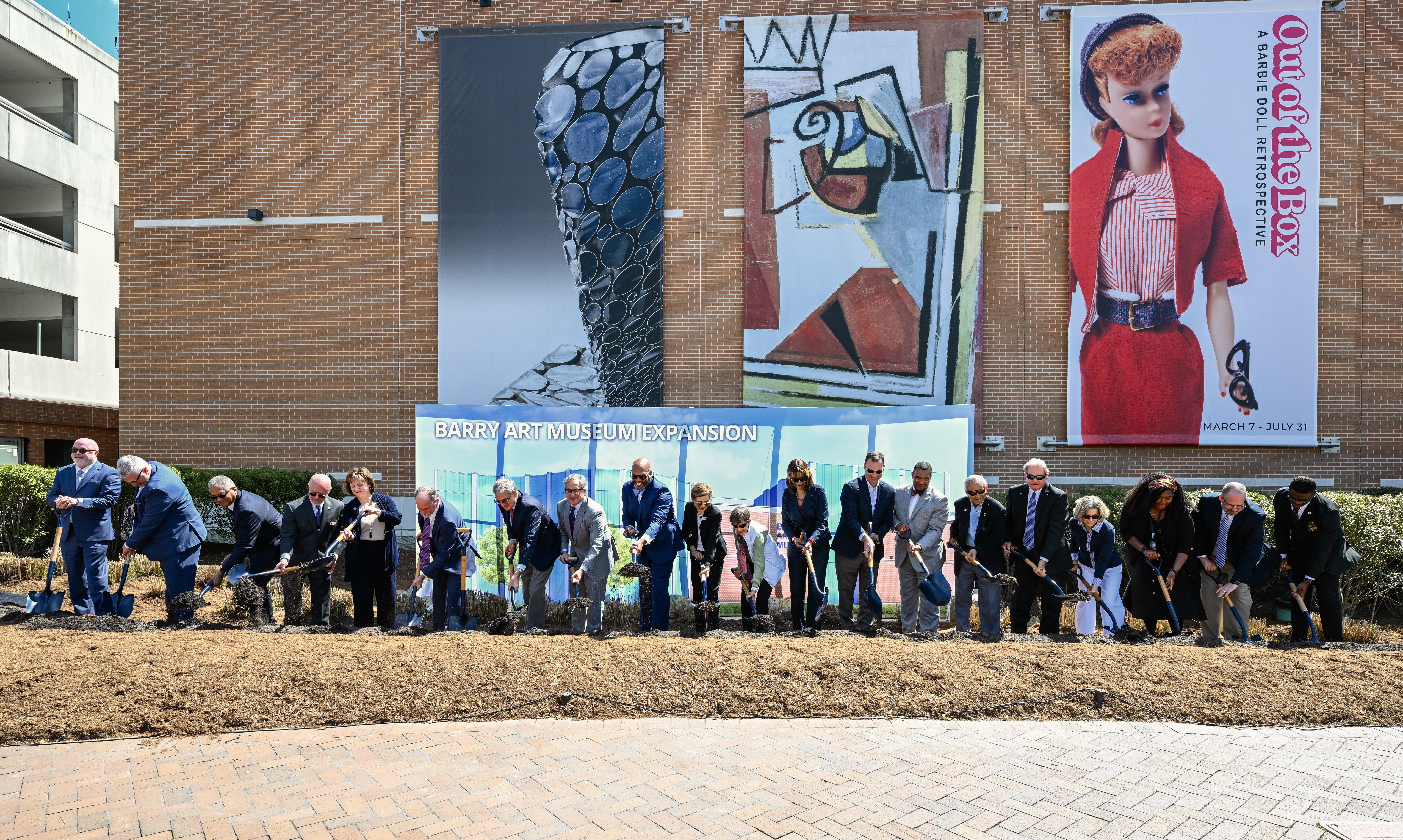 The first groundbreaking, held on April 16, was for the $25 million Barry Art Museum expansion, which will add a 25,200-square-foot, three-story wing. The project will include a multiuse event space, community gallery, media video gallery, educational laboratory and expanded art storage. The expansion was funded by museum co-founders Carolyn and Dick Barry, Joan Brock and the family of Leah and Richard Waitzer. Funding for this project will also establish an endowment for operations.