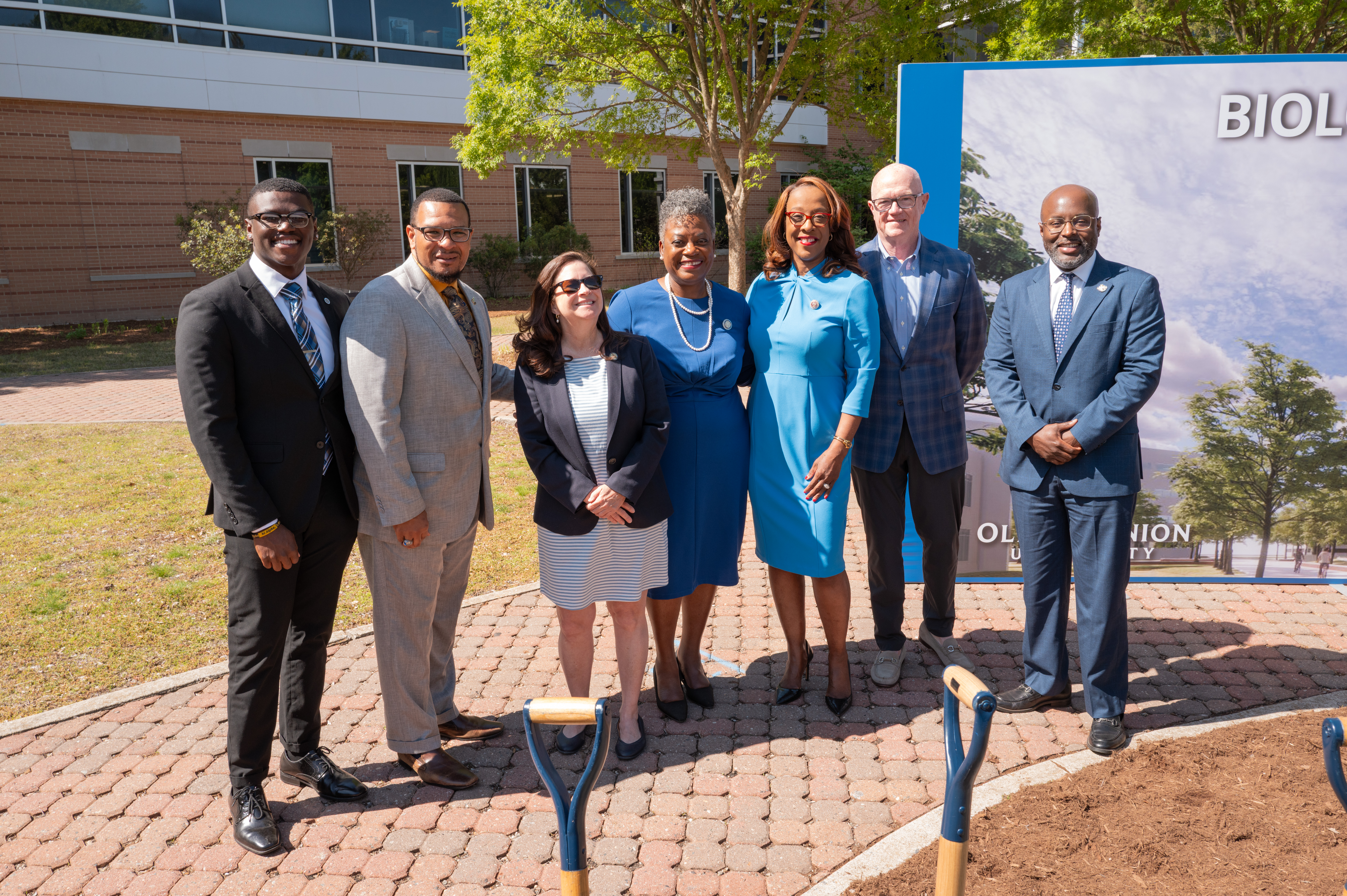 ODU President Brian O Hemphill, Ph.D., elected officials from Norfolk City Council and the Virginia General Assembly, and ODU students and leadership break ground on the new Biological Sciences Building. Photo Chuck Thomas/ODU