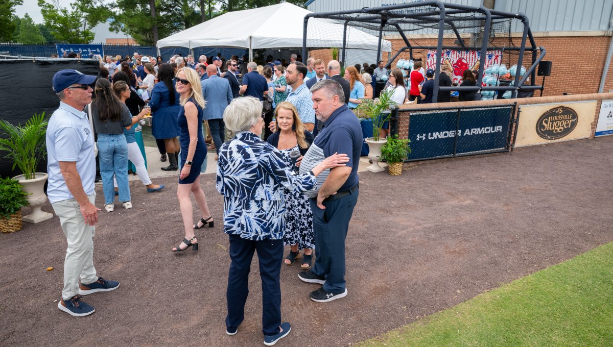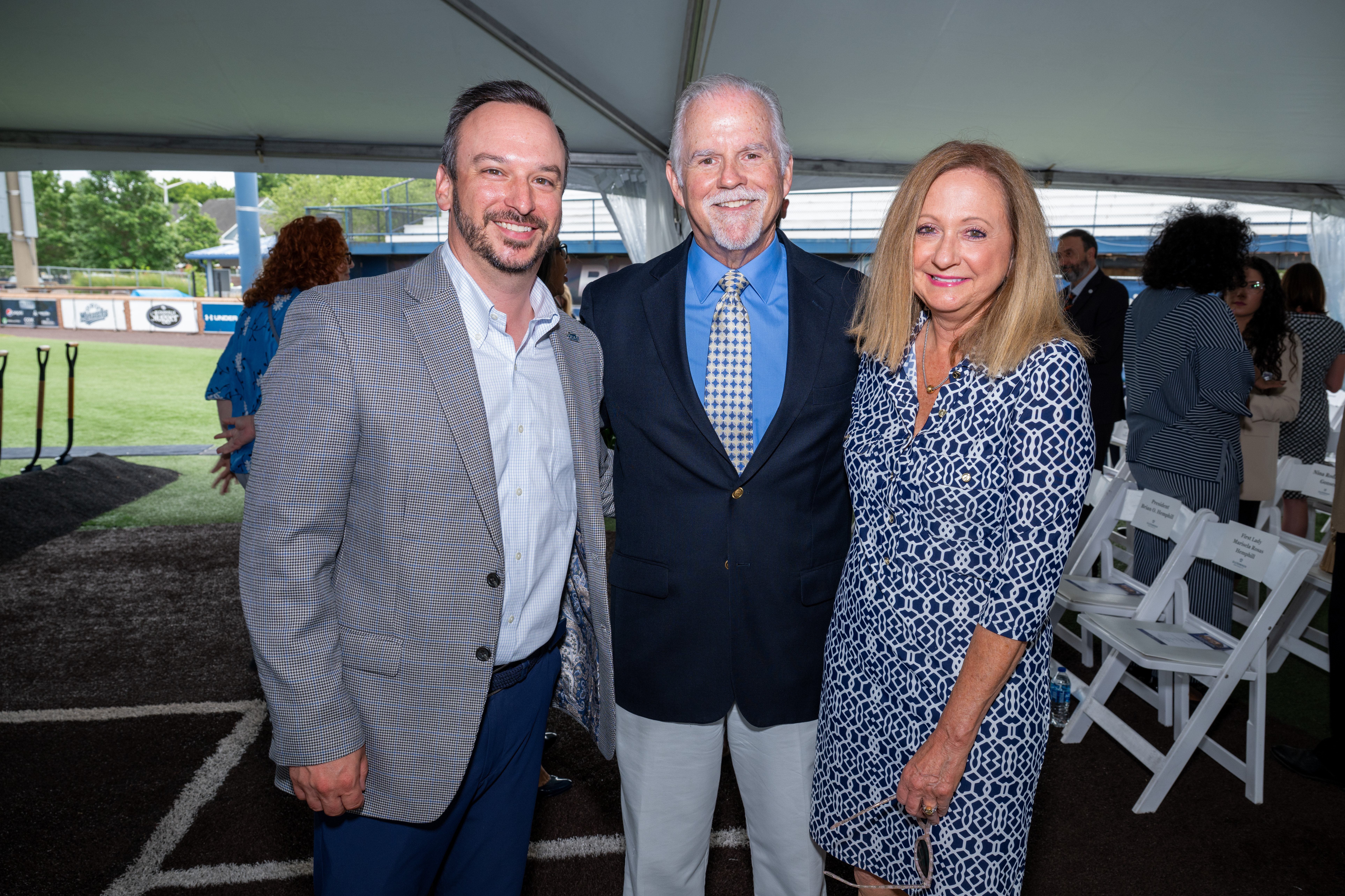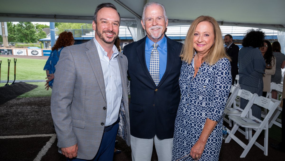 On June 5, the University celebrated the third groundbreaking to mark the $24 million Ellmer Family Baseball Complex at Bud Metheny Ballpark renovation. The project is expected to be completed in 2026 before the upcoming season. It will improve player and fan experiences by offering updated locker rooms and a players’ lounge, an expansive hospitality area, donor lounges, donor suites and accommodations for up to 3,000 guests. With lead funding from long-time donor and current Board of Visitors member Dennis Ellmer and his wife Jan, who were joined by approximately 120 additional donors, the renovation will ensure a bright future for a deserving team at a competitive level in a world-class facility.