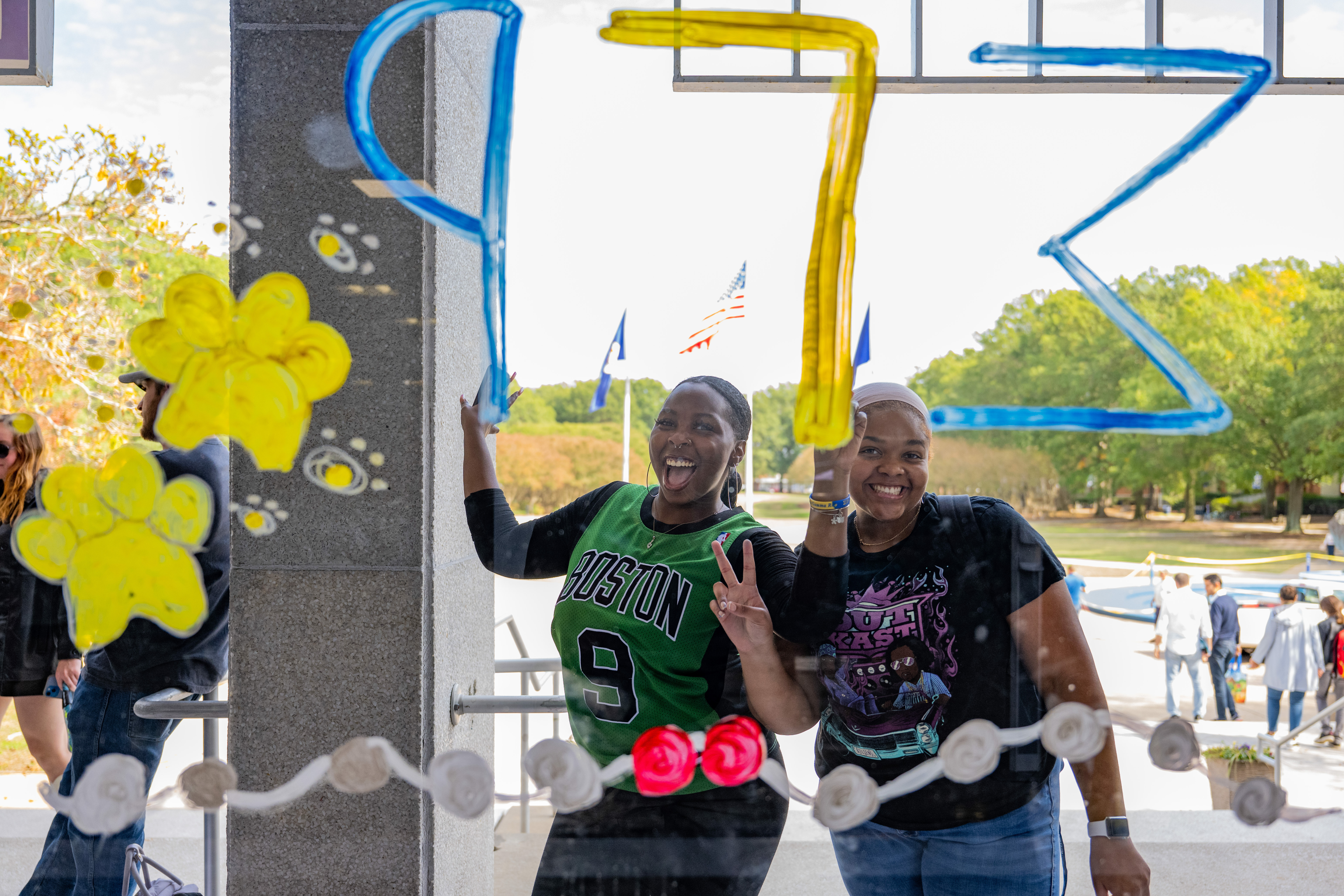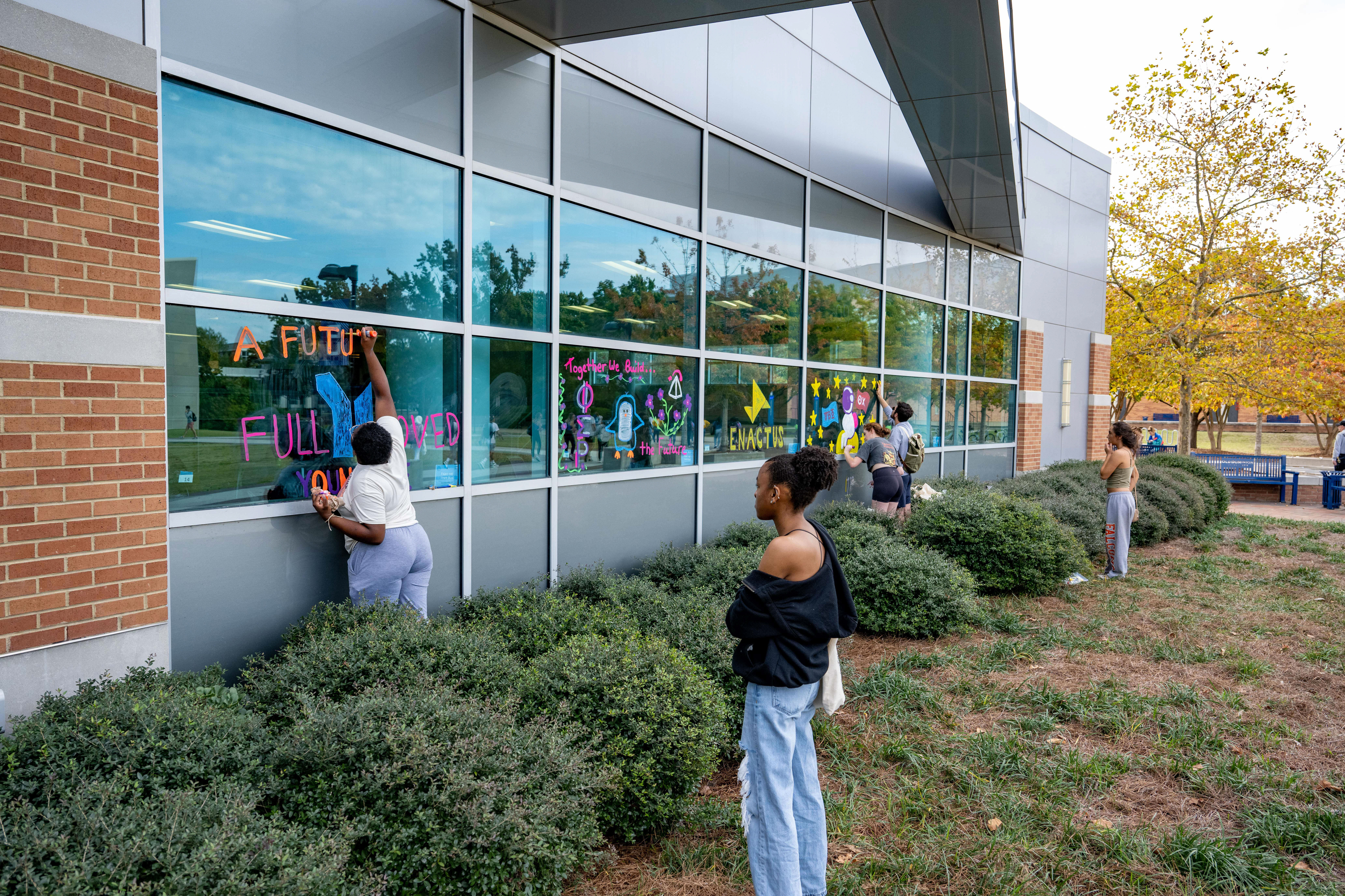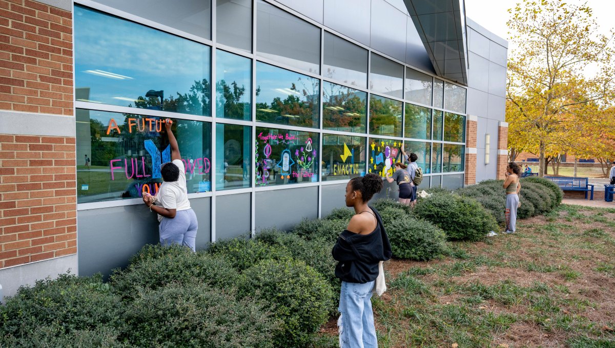 Many student organizations came out to paint the campus – including windows – blue. Photo Chuck Thomas/ODU
