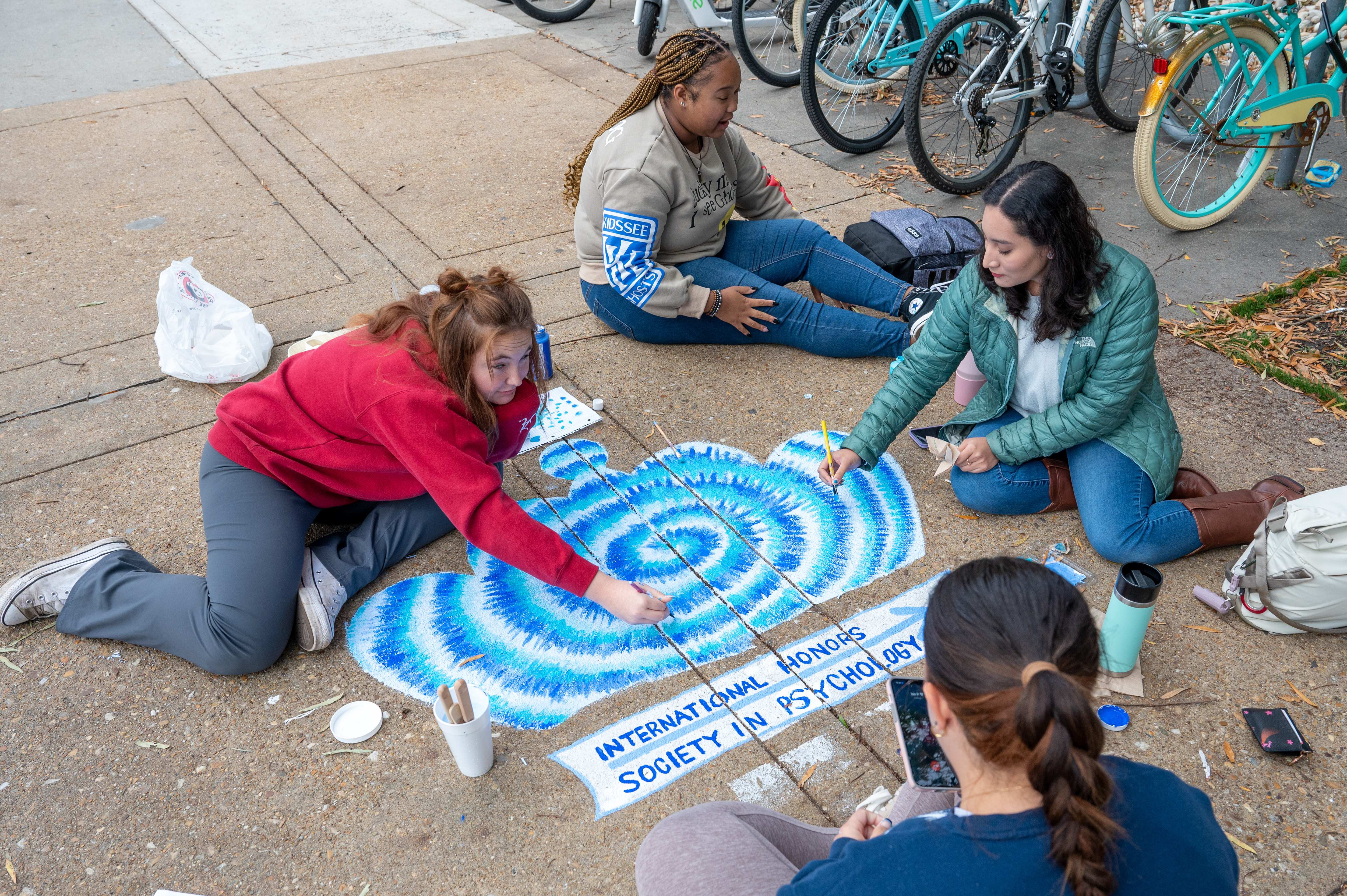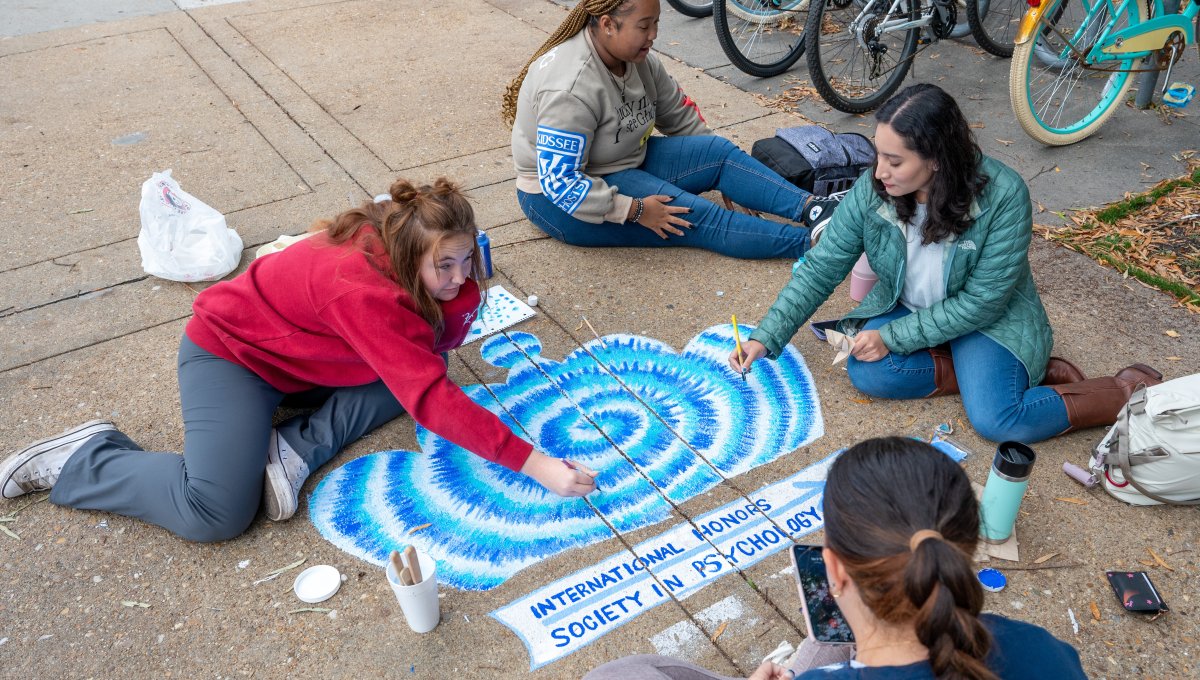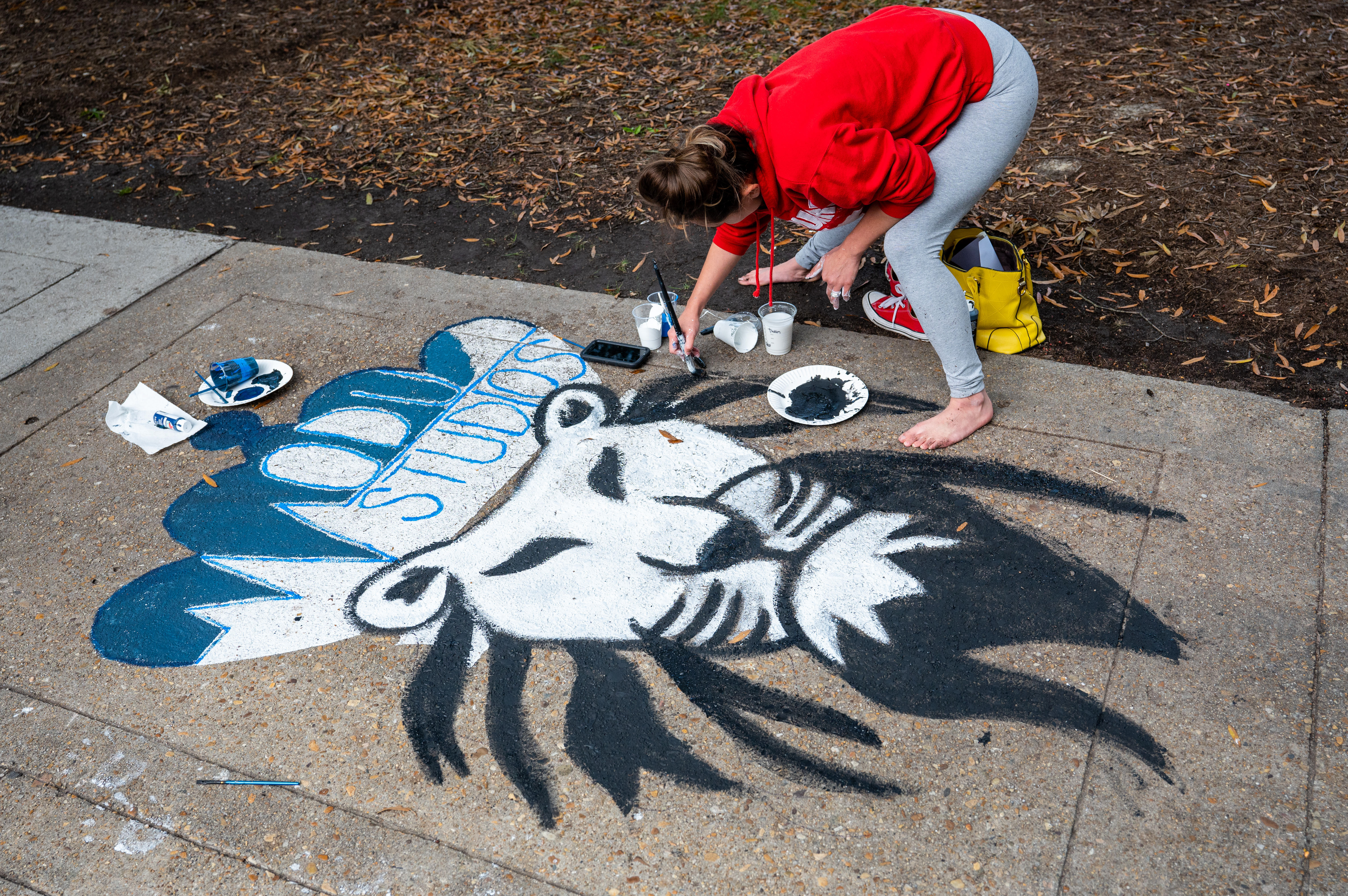 Many student organizations came out to paint the campus – including windows – blue. Photo Chuck Thomas/ODU