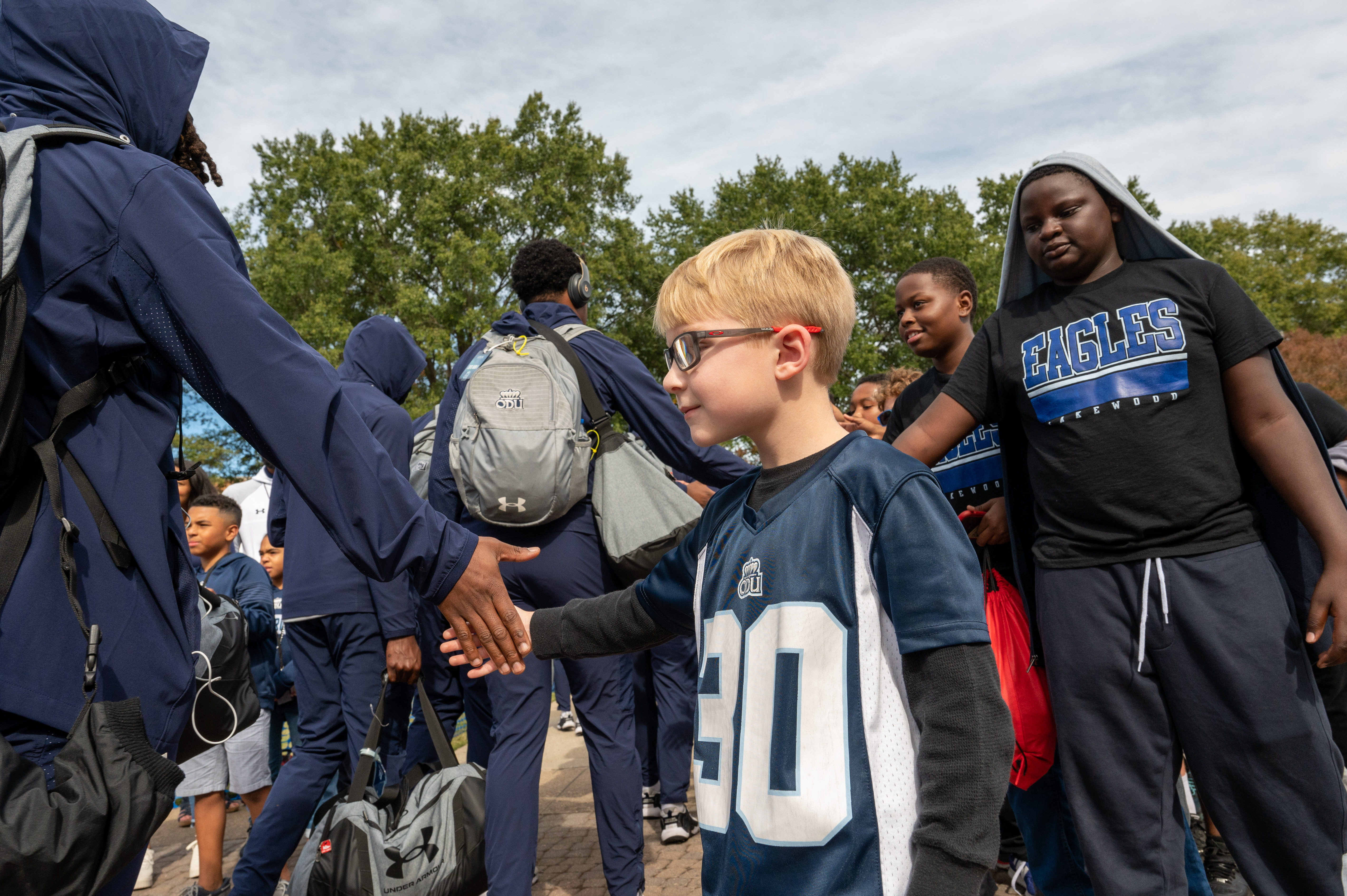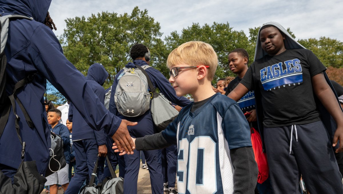 Fans line up to greet the Monarch football players as they make their way to S.B. Ballard Stadium. Photo Chuck Thomas/ODU
