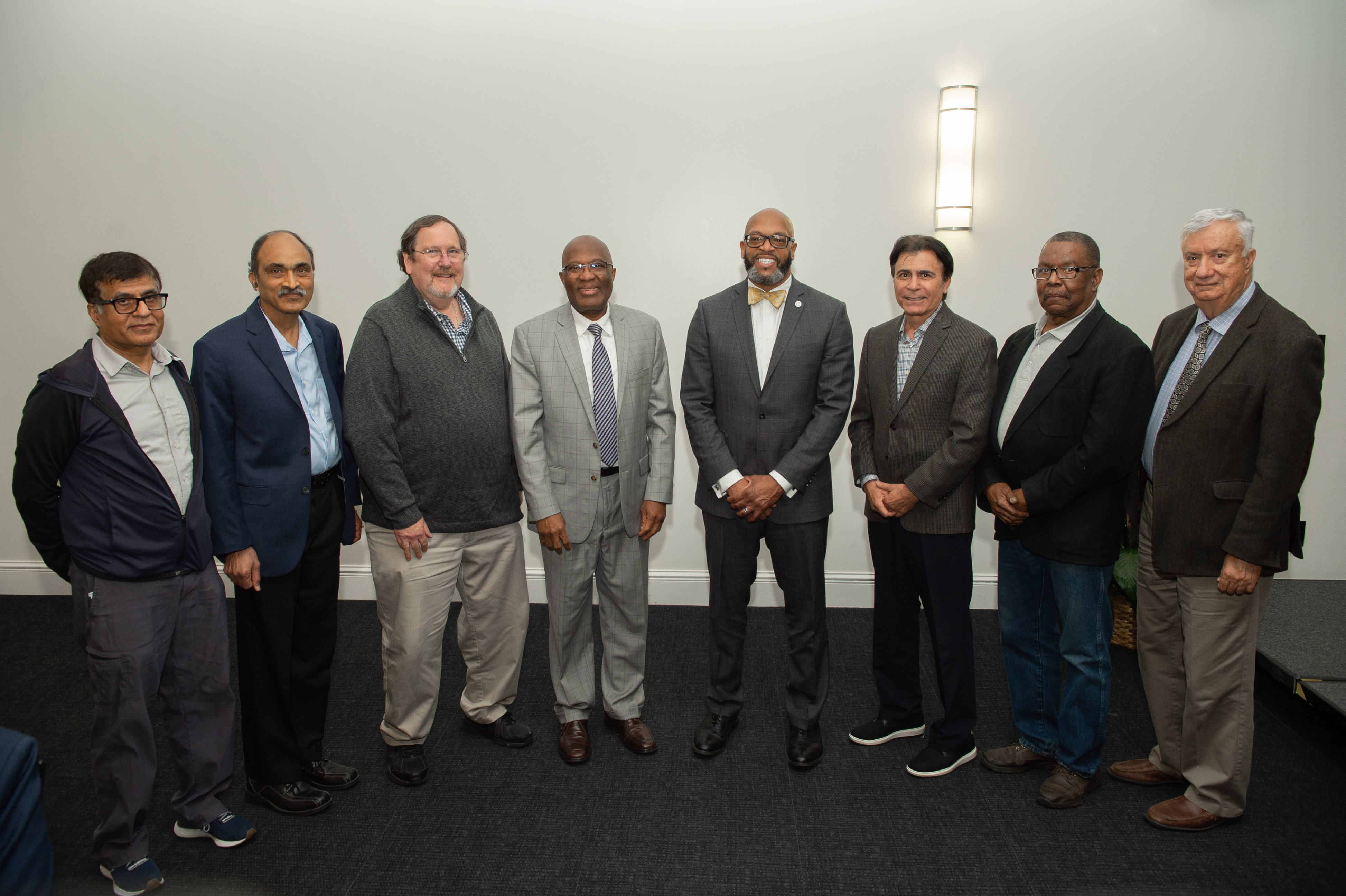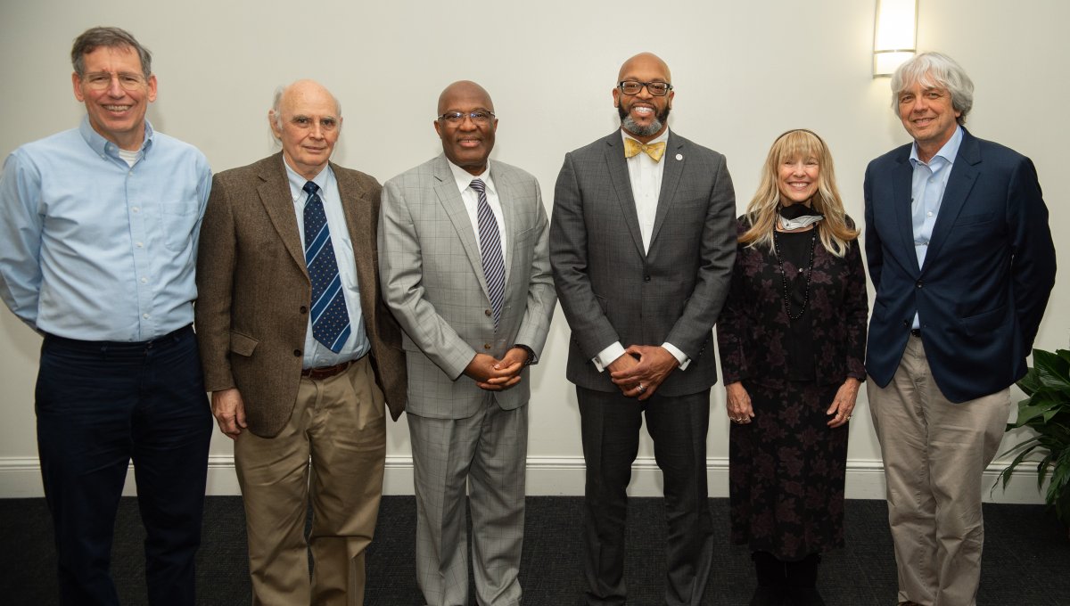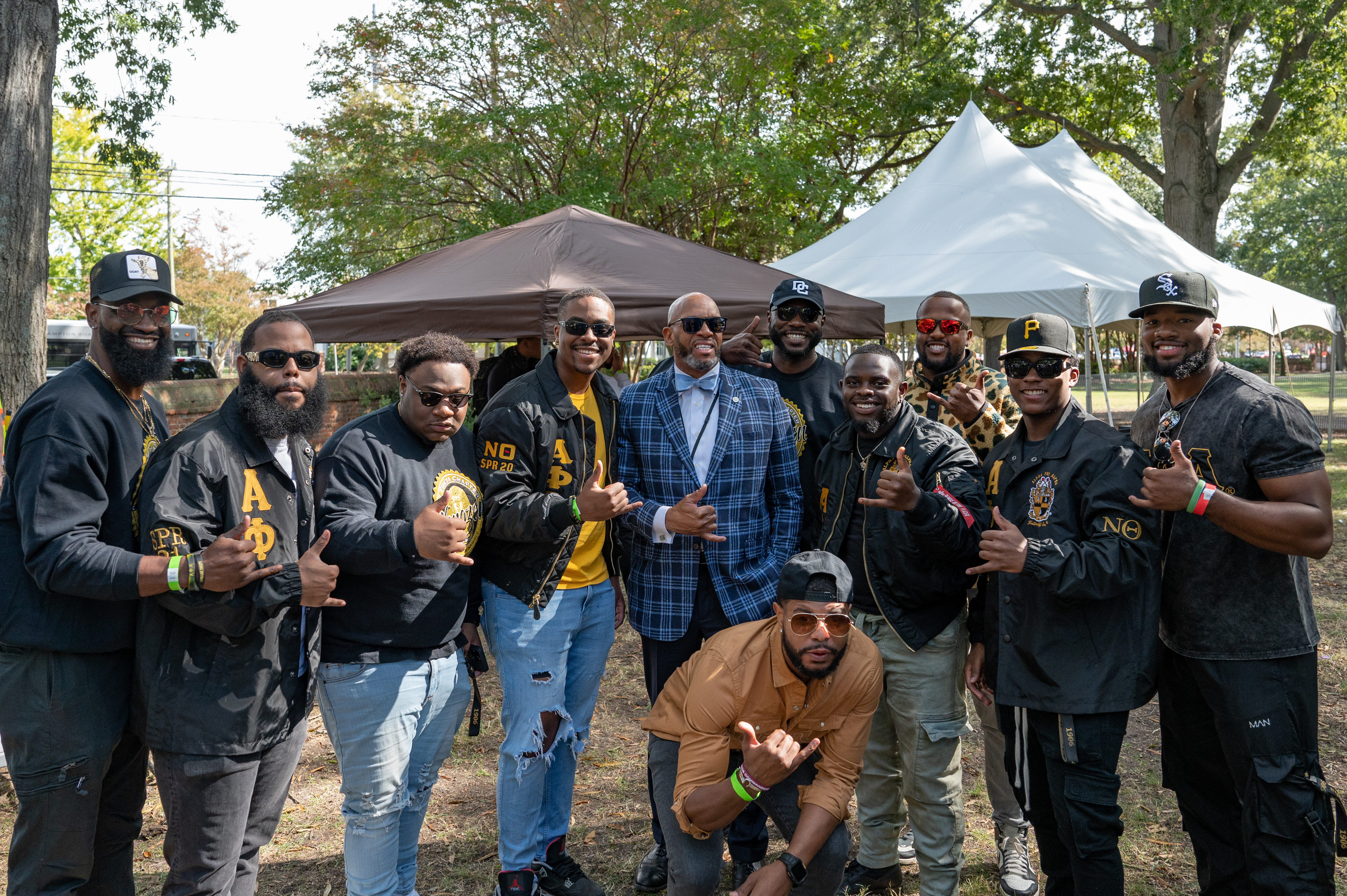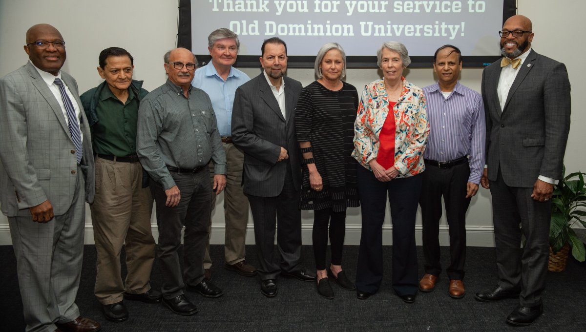 ODU President Brian O. Hemphill, Ph.D., poses with members of Alpha Phi Alpha. Photo Chuck Thomas/ODU