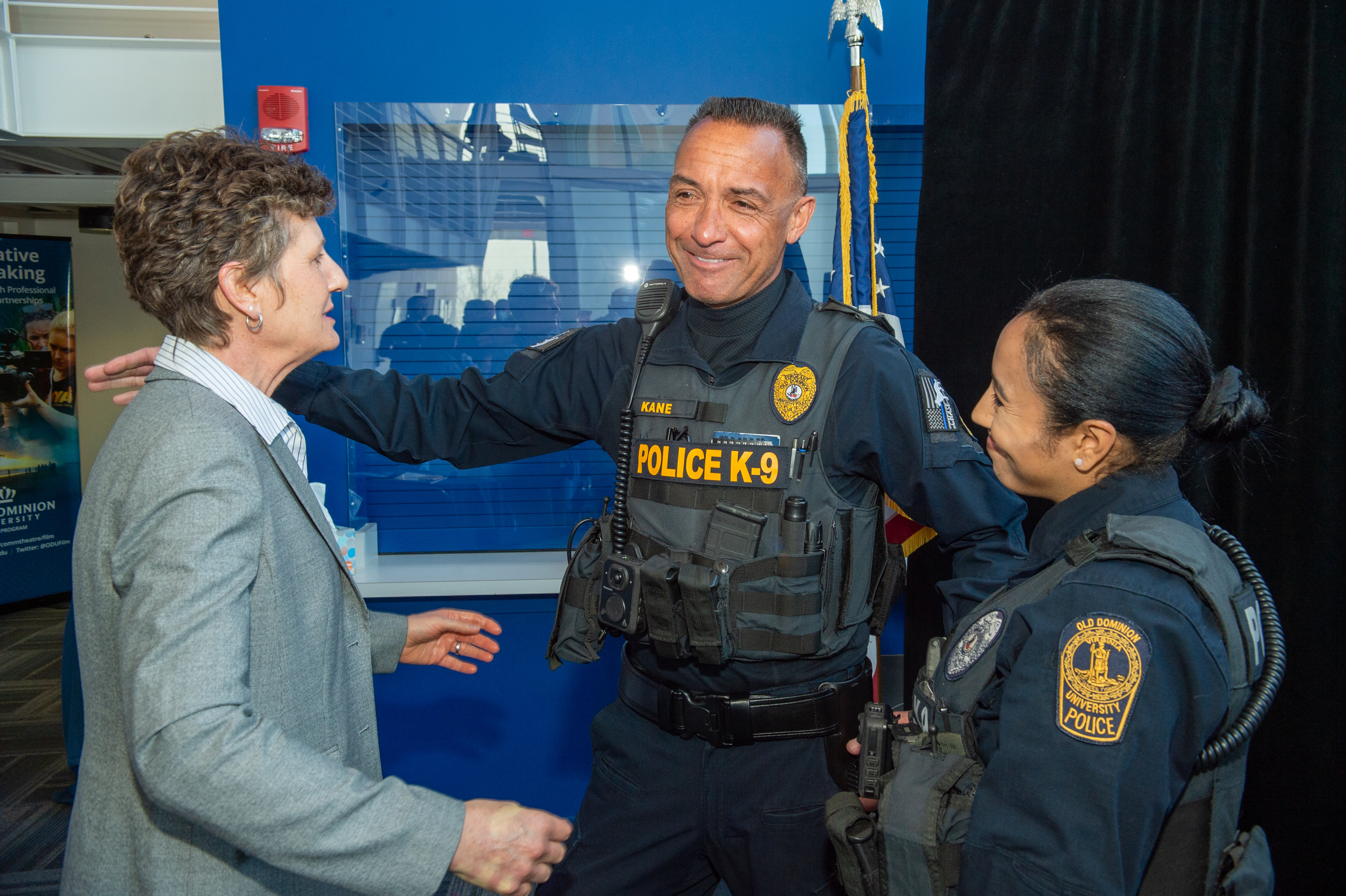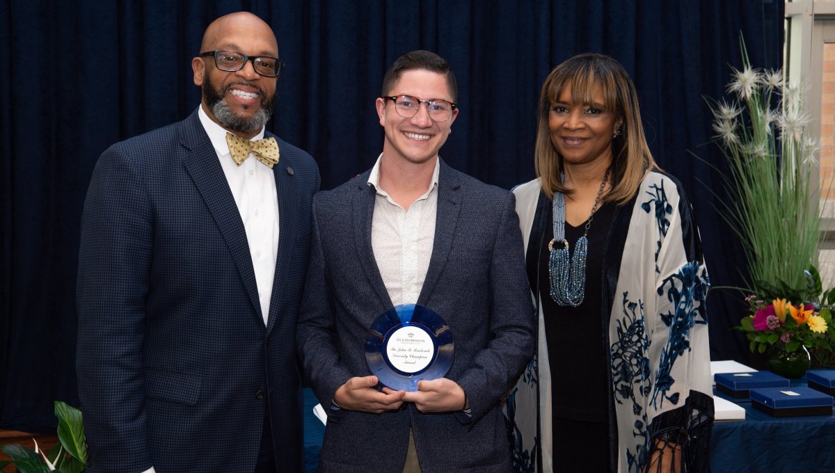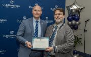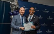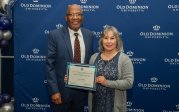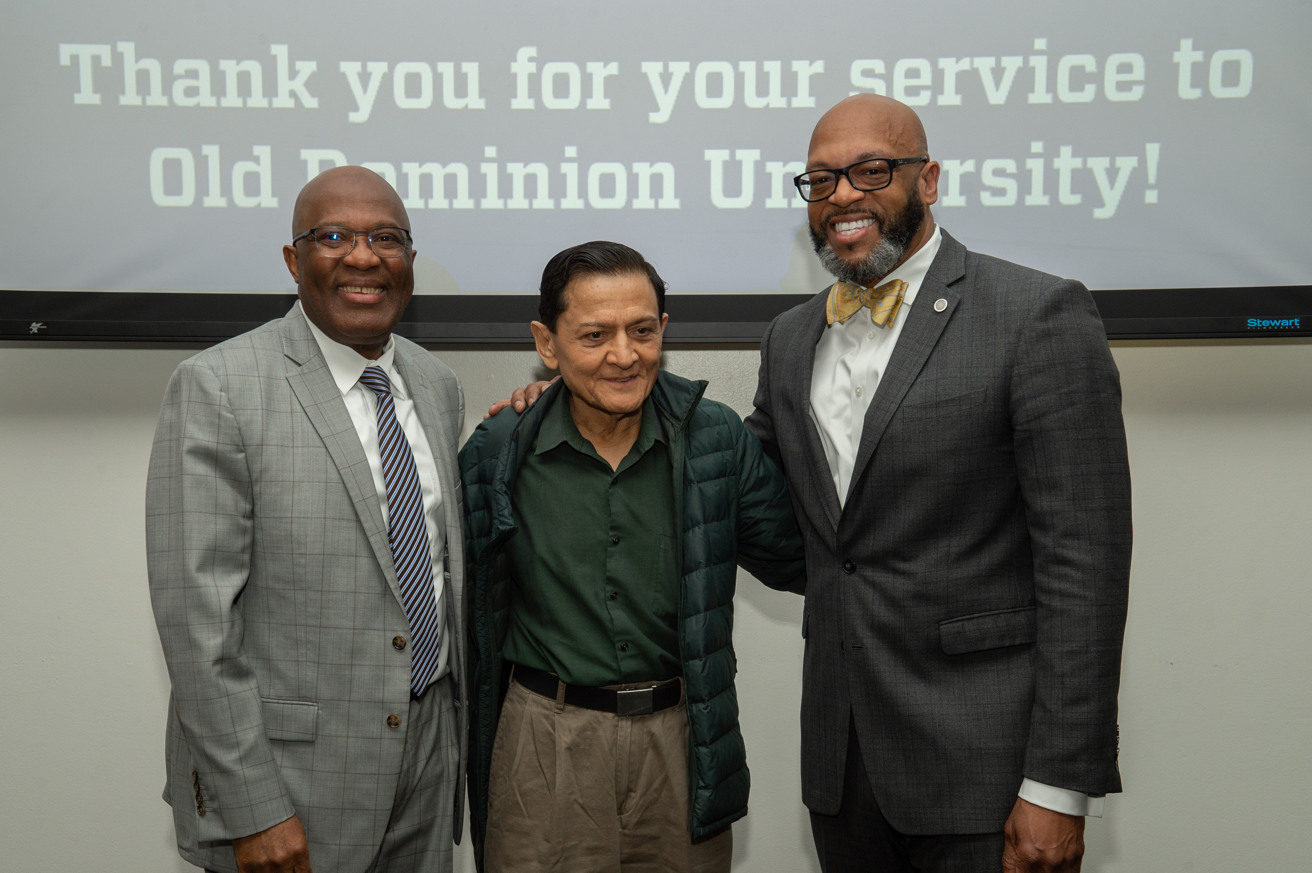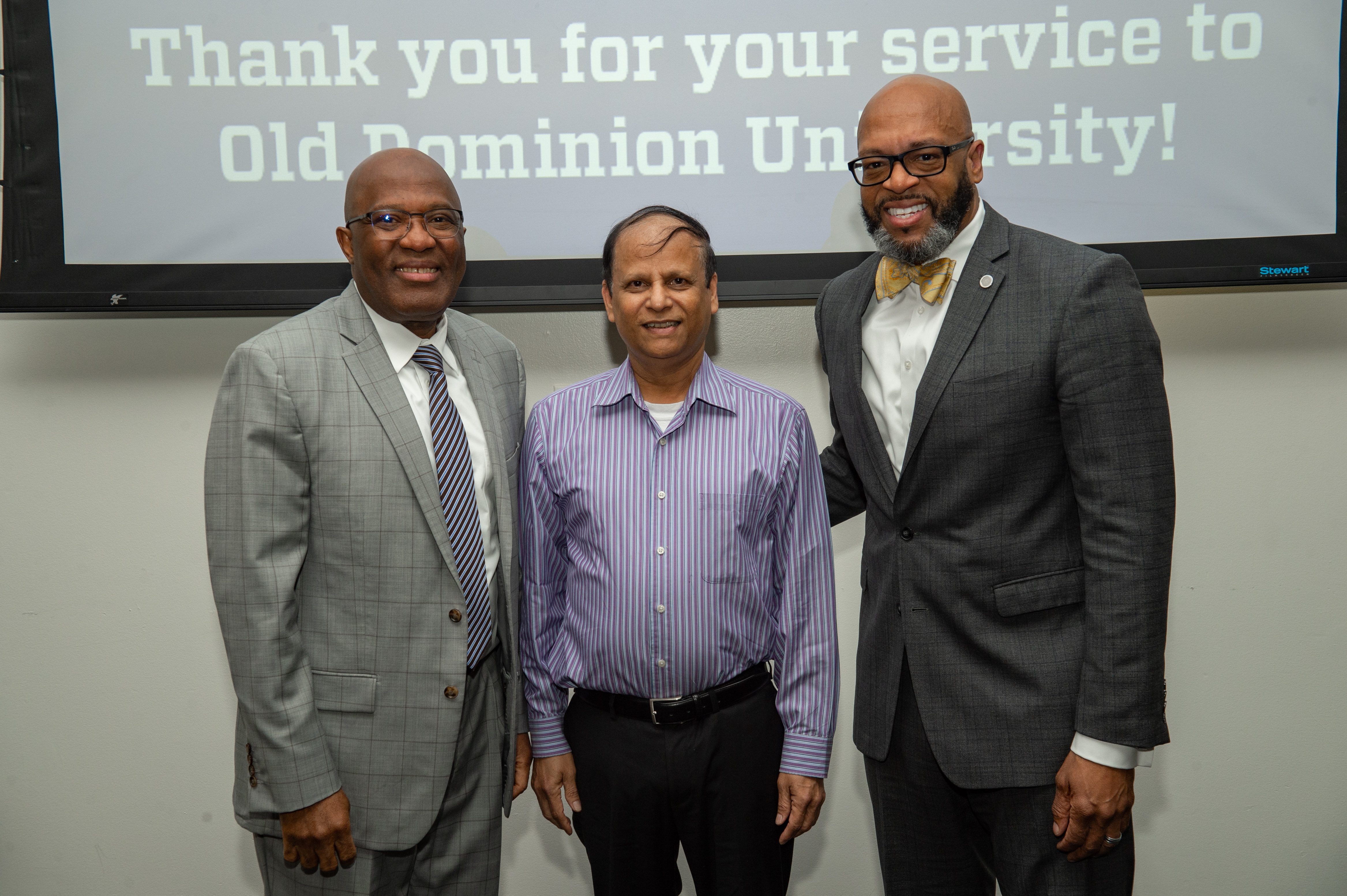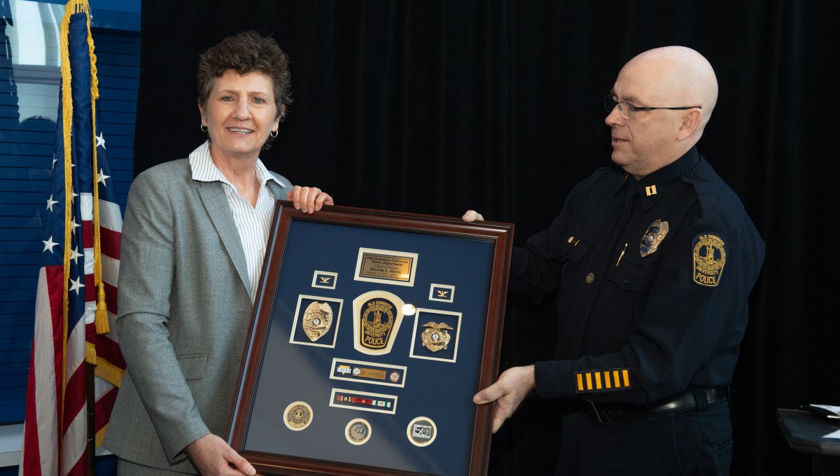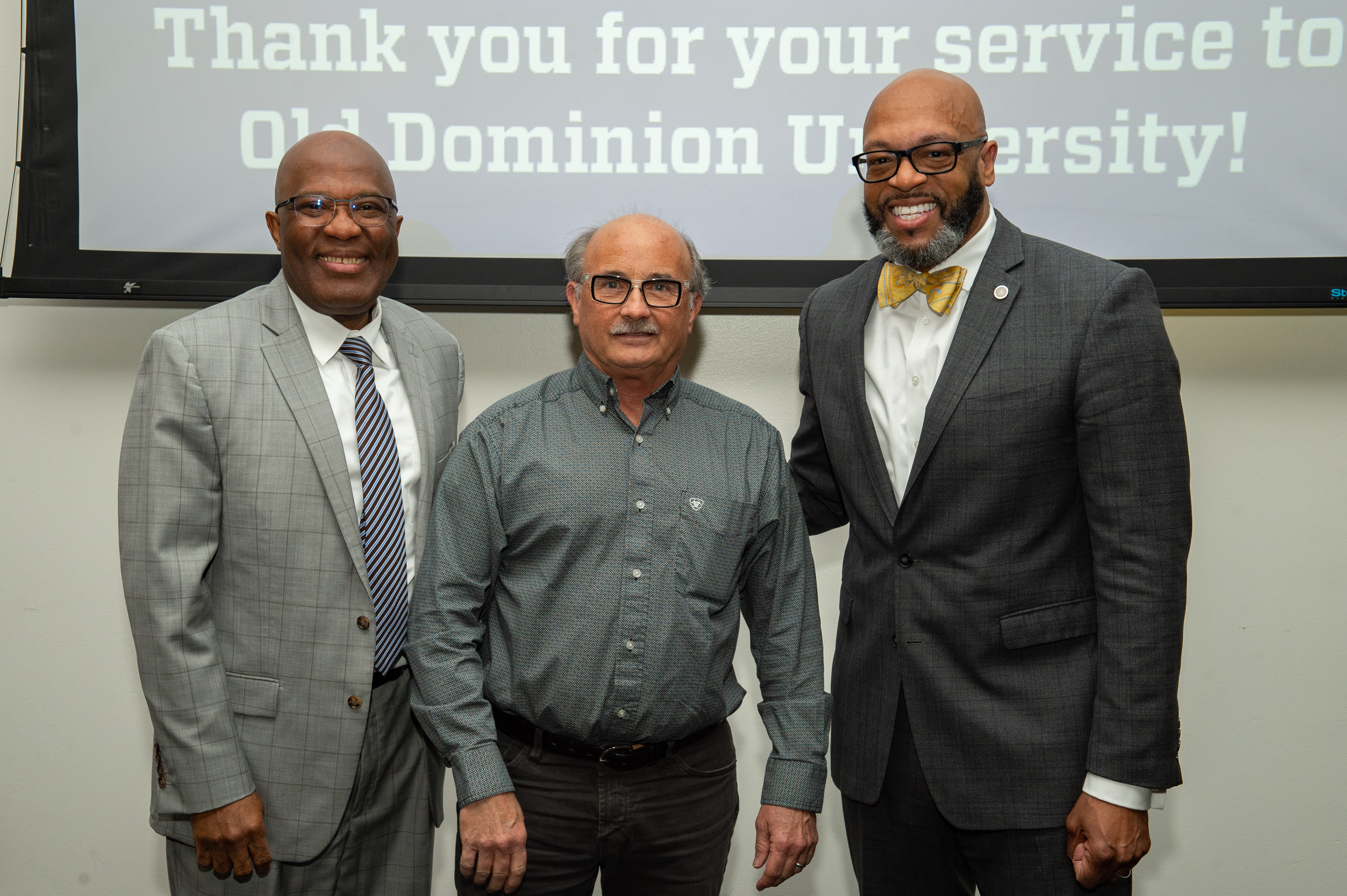 ODU President Brian O. Hemphill, Ph.D., poses for a photo with Woodrow Simms, a 1990 graduate. Photo Chuck Thomas/ODU