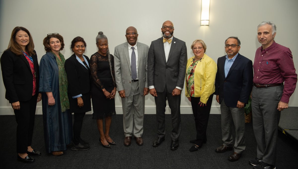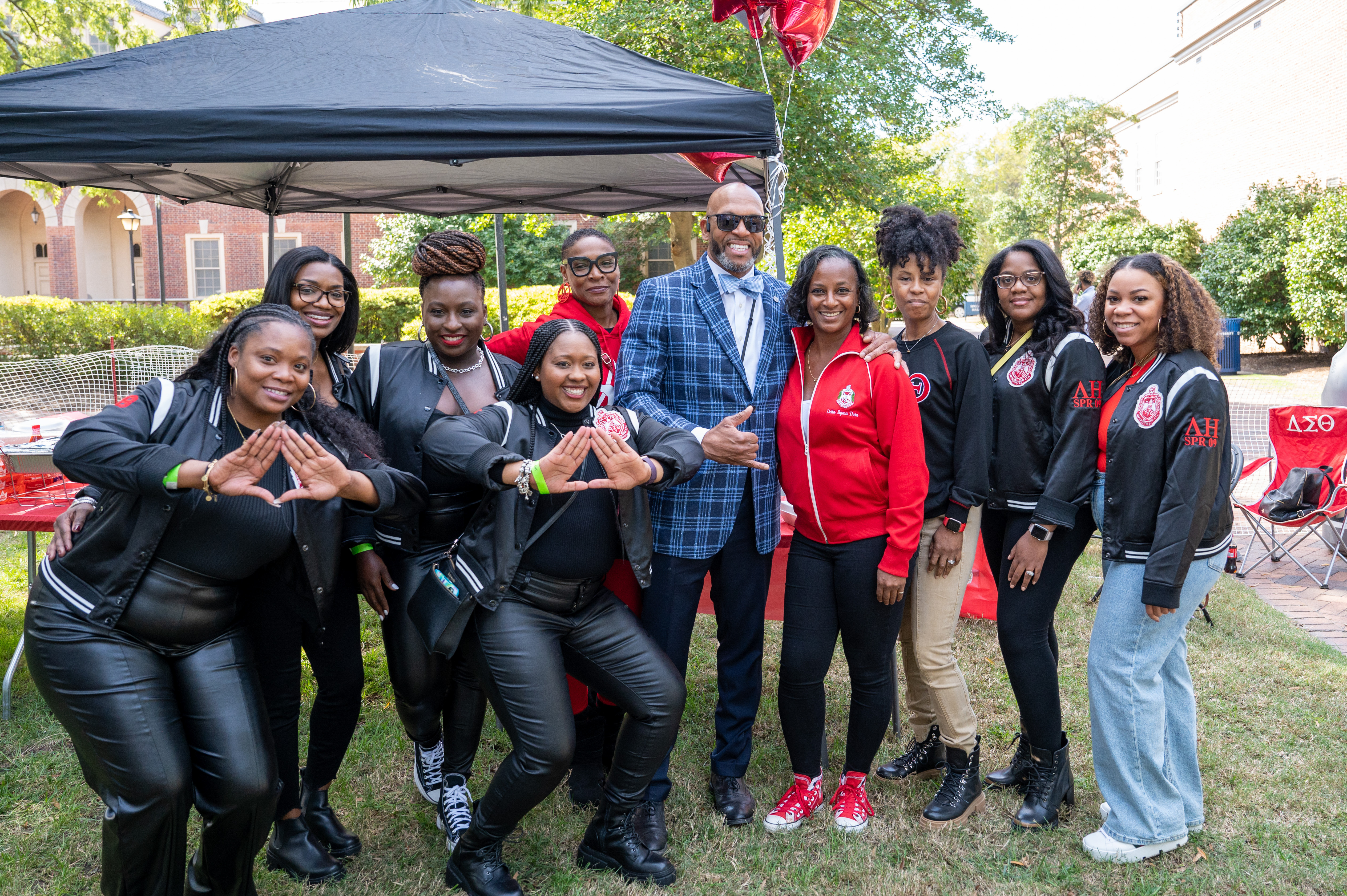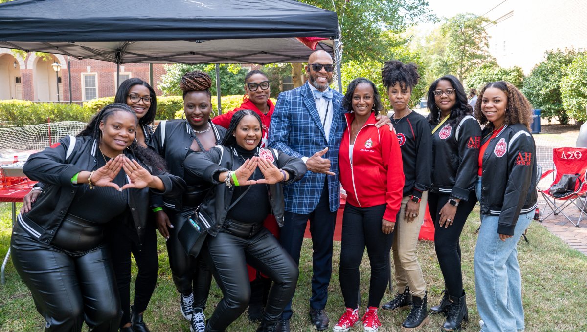 ODU President Brian O. Hemphill, Ph.D., poses with members of Delta Sigma Theta. Photo Chuck Thomas/ODU