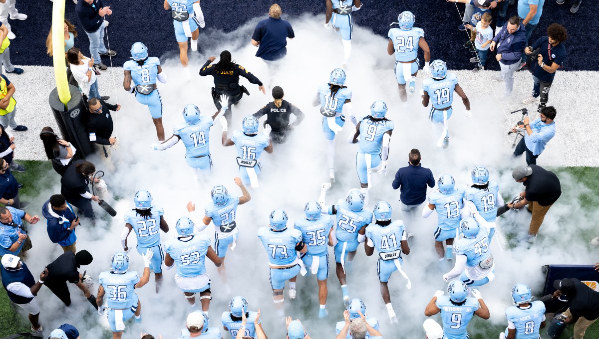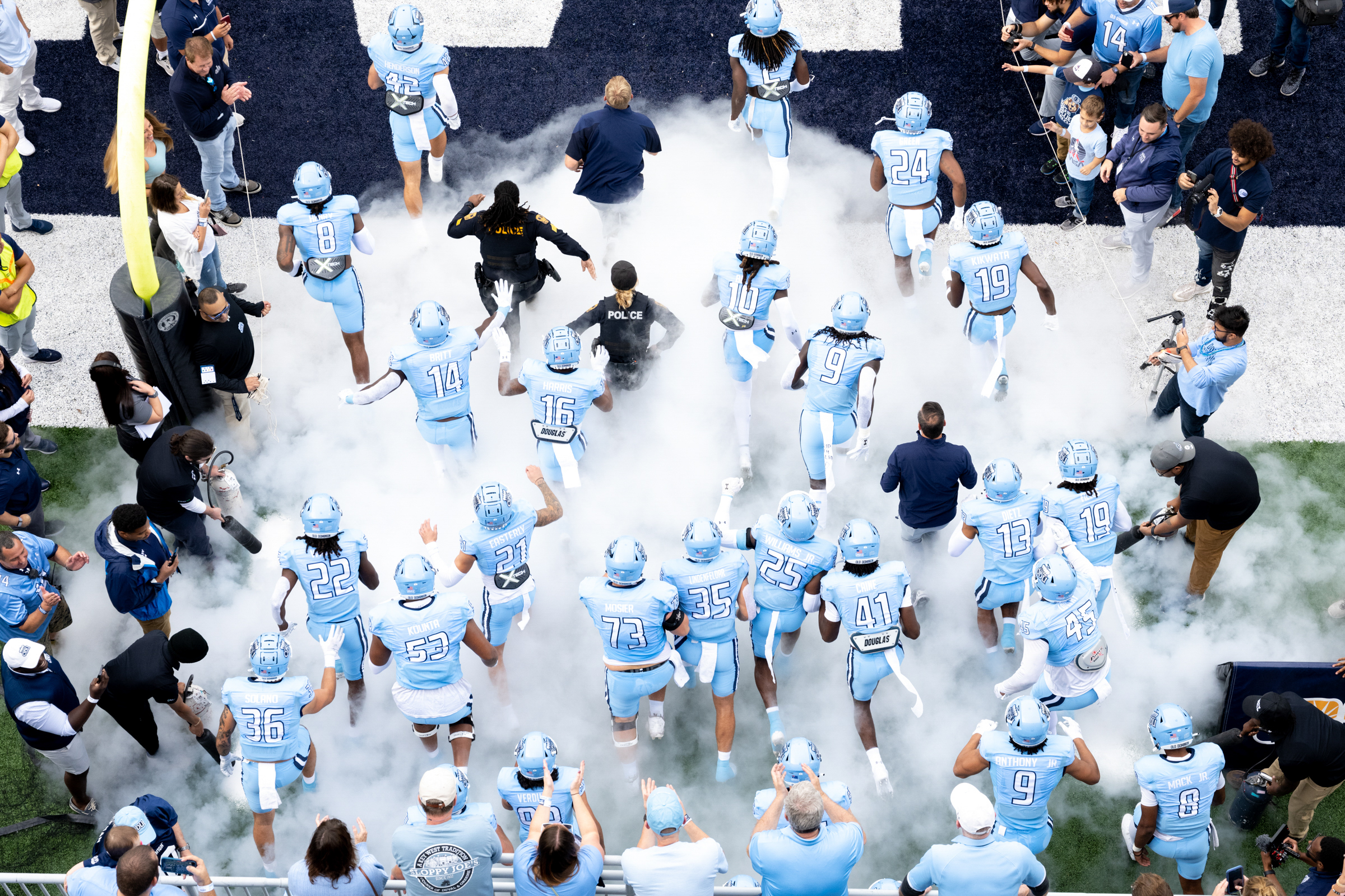 The Old Dominion University football team runs onto the field for the game against Georgia Southern. Photo Nicholas Clark/ODU