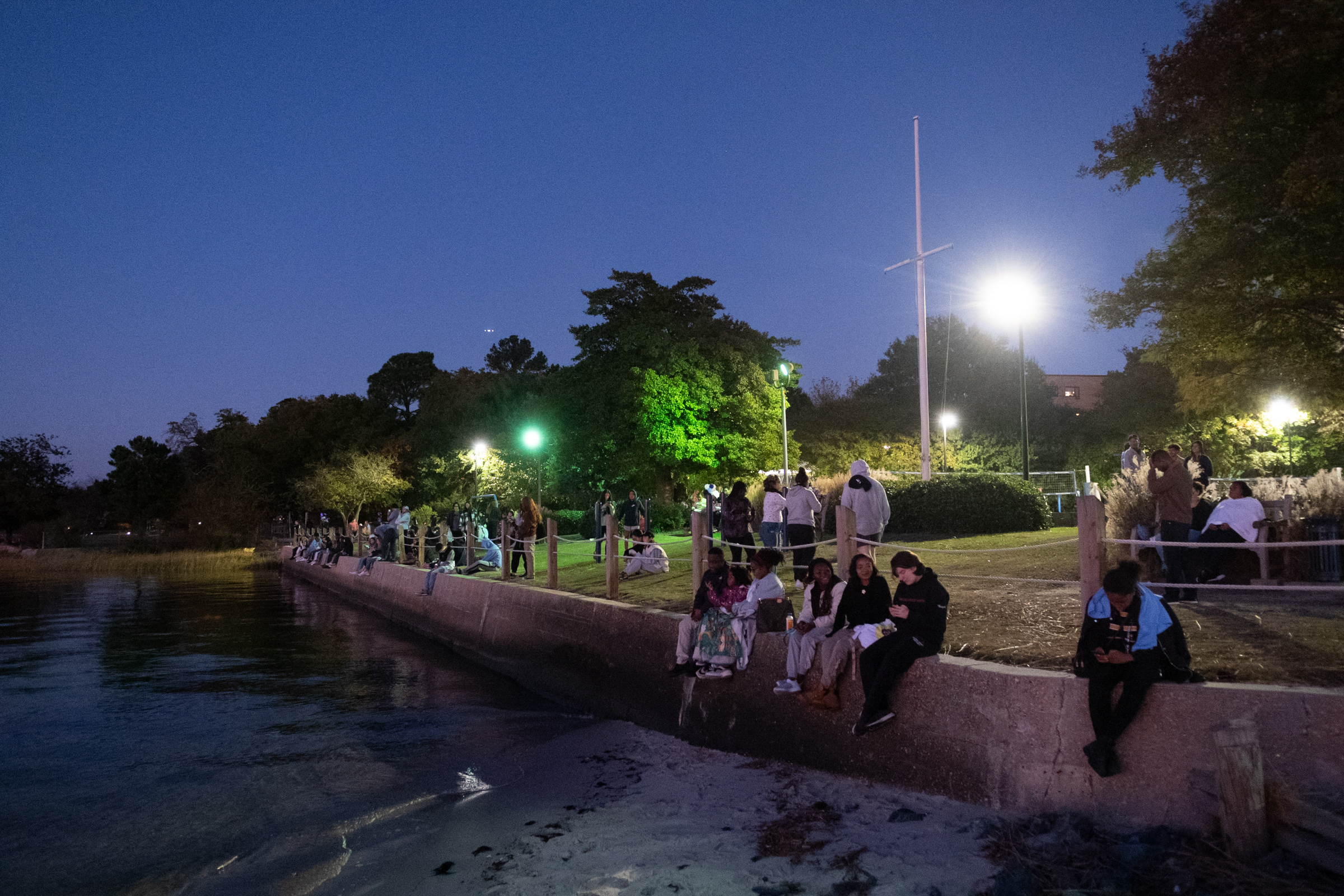Students gather at Whitehurst Beach to watch fireworks and the drone light show. Photo Nicholas Clark/ODU