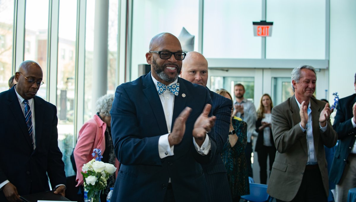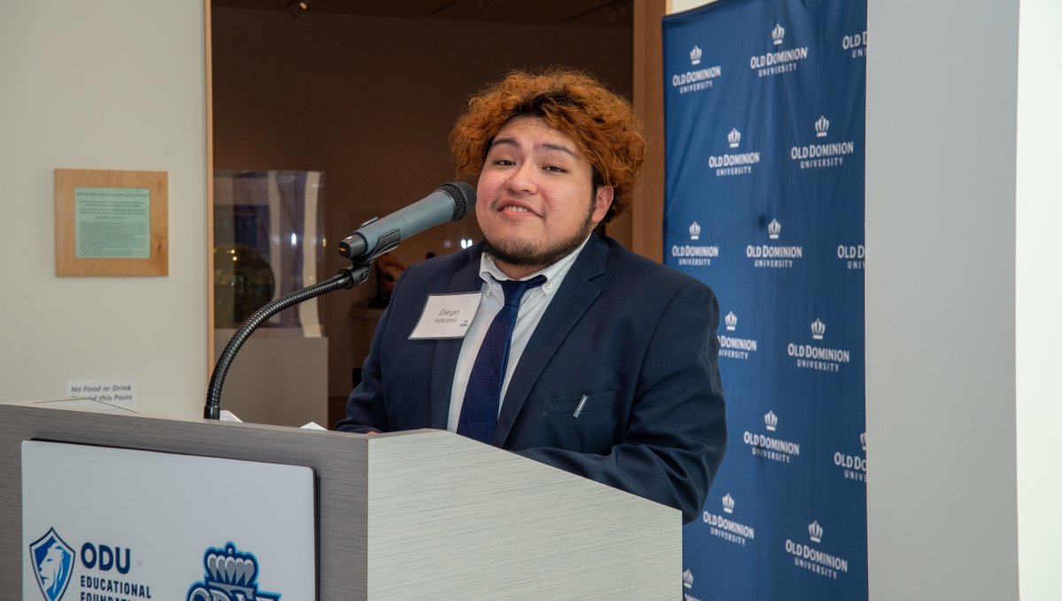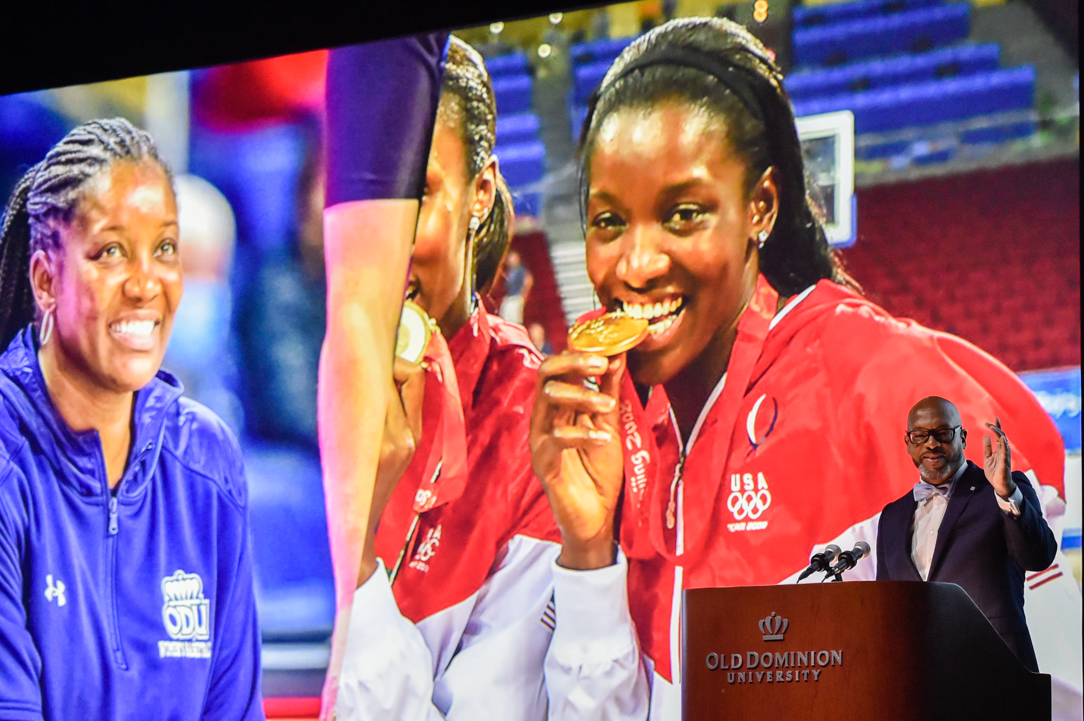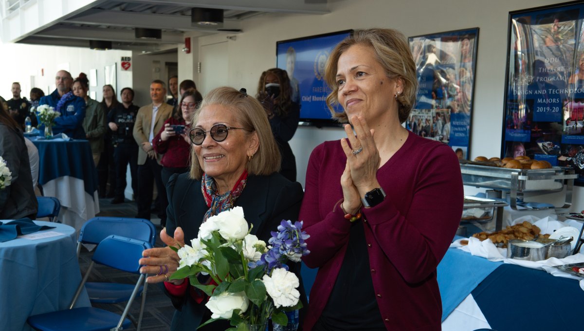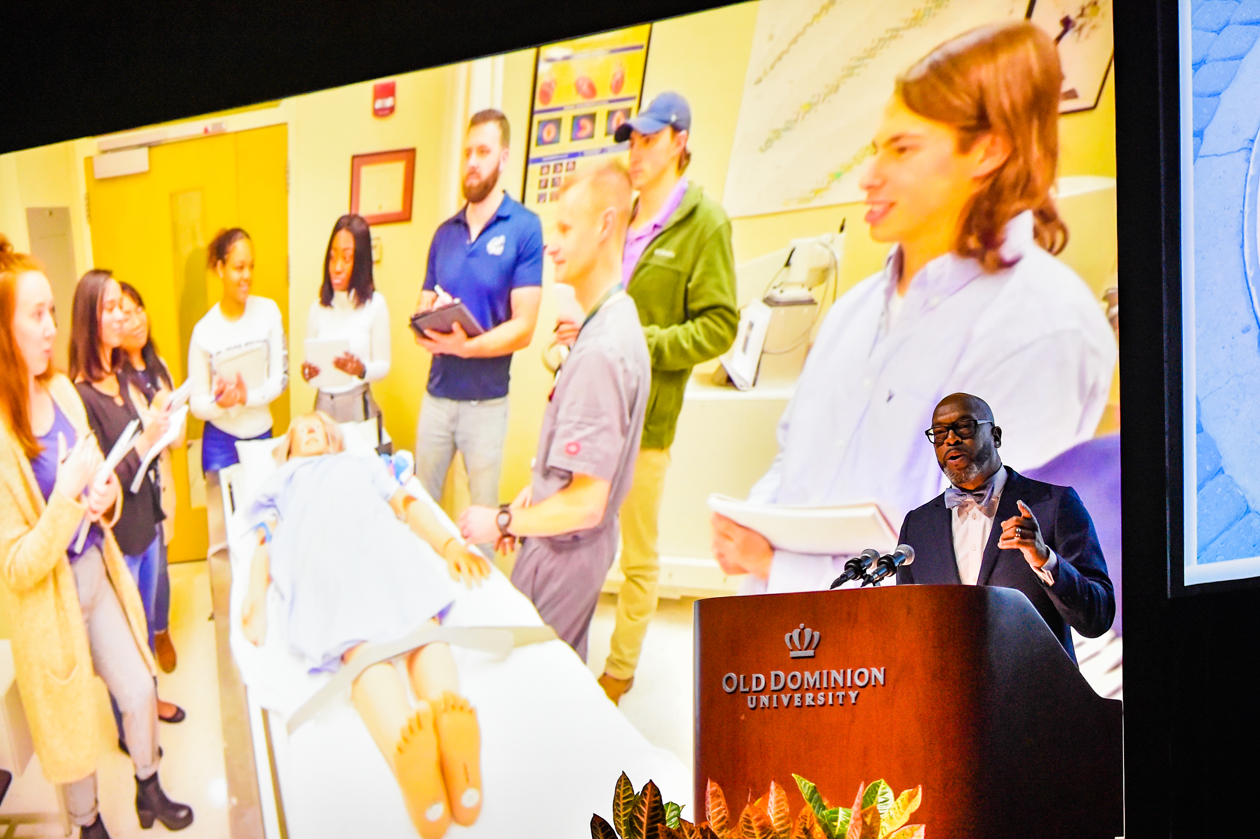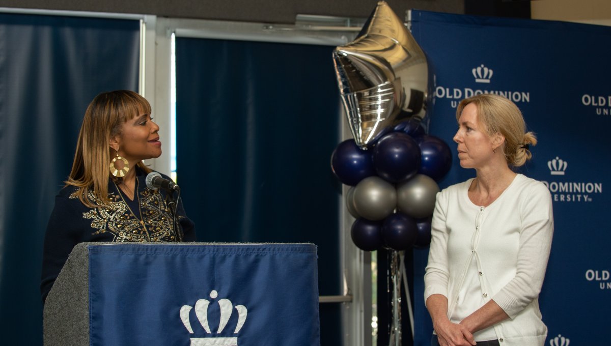 Old Dominion University President Brian O. Hemphill, Ph.D., announced plans for a School of Data Science and an expanded baseball facility during his first State of the University address, which he delivered Friday at Chartway Arena. Photo Chuck Thomas/ODU.