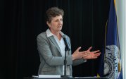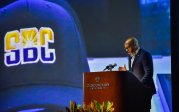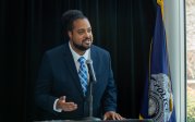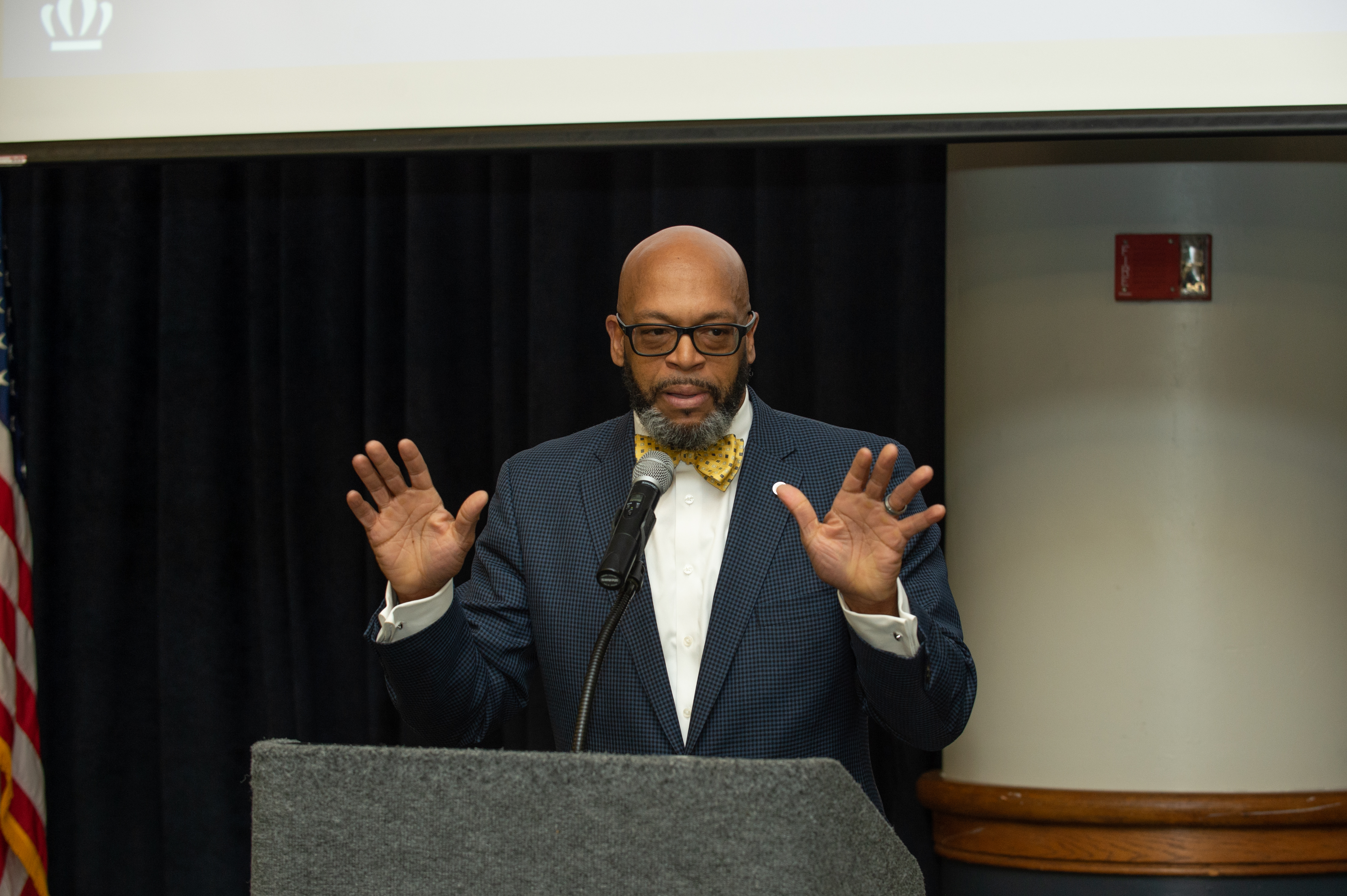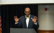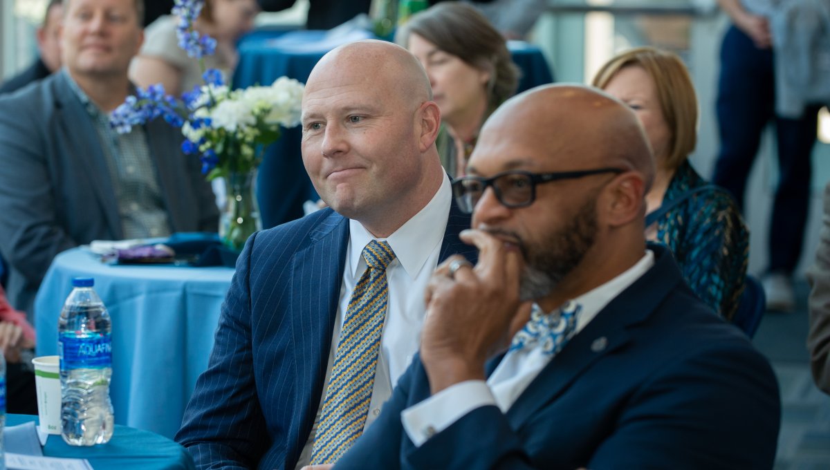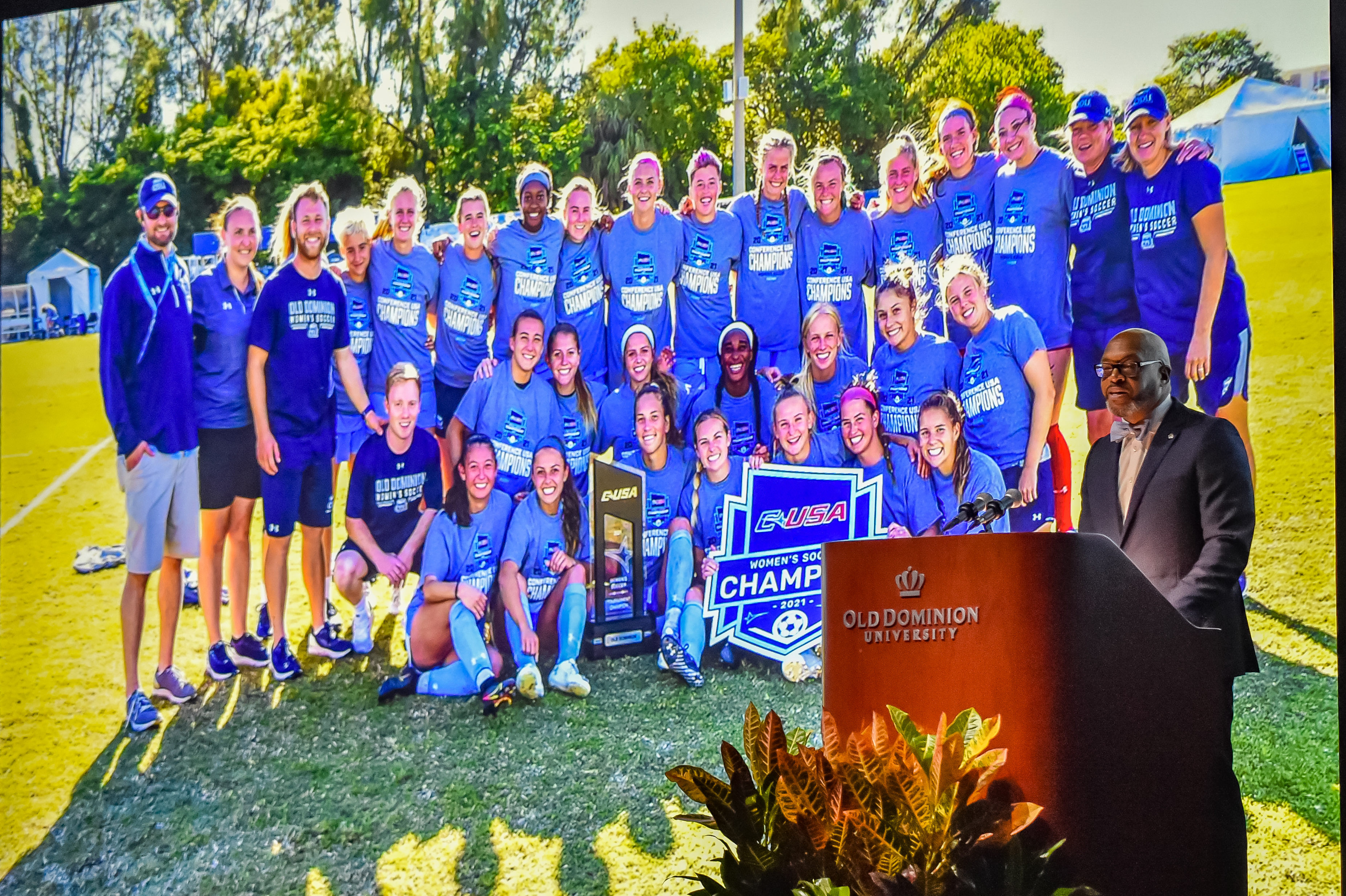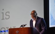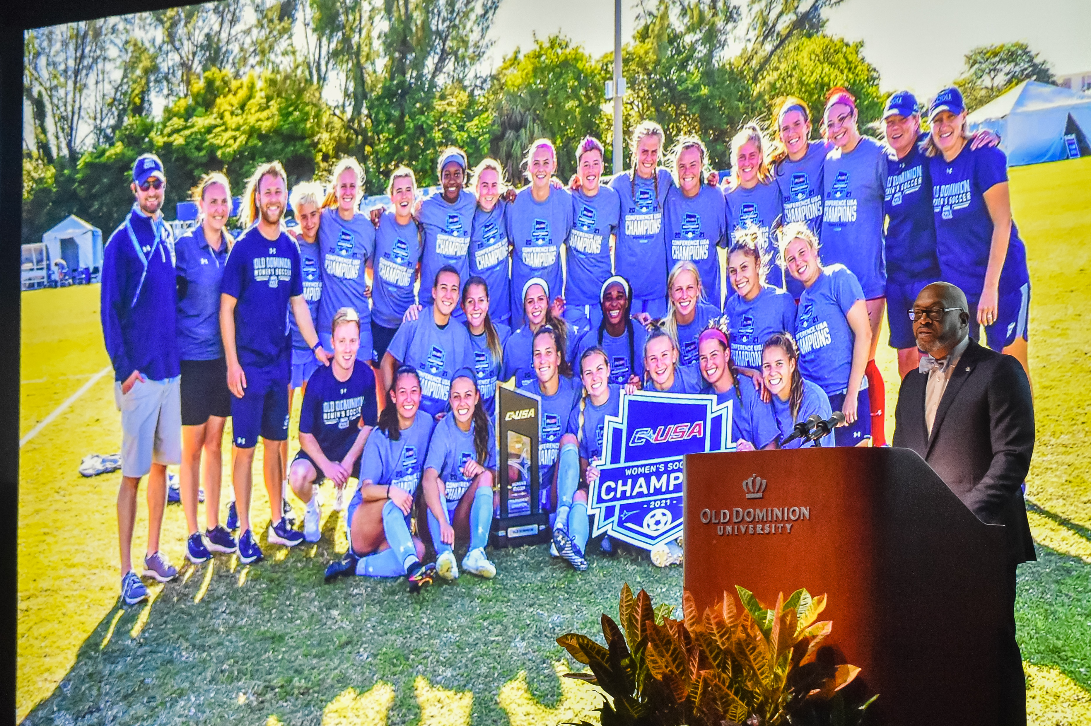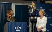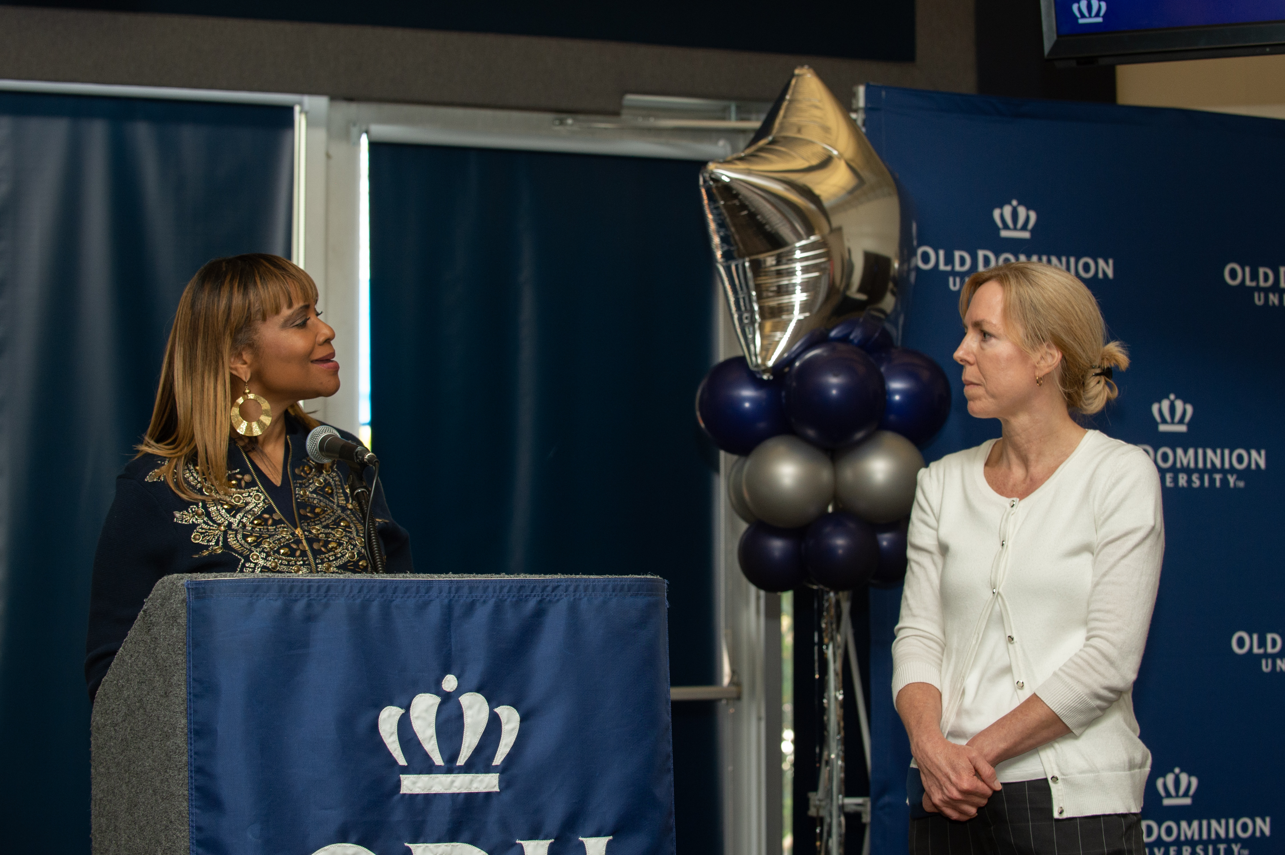 Old Dominion University President Brian O. Hemphill, Ph.D., announced plans for a School of Data Science and an expanded baseball facility during his first State of the University address, which he delivered Friday at Chartway Arena. Photo Chuck Thomas/ODU.