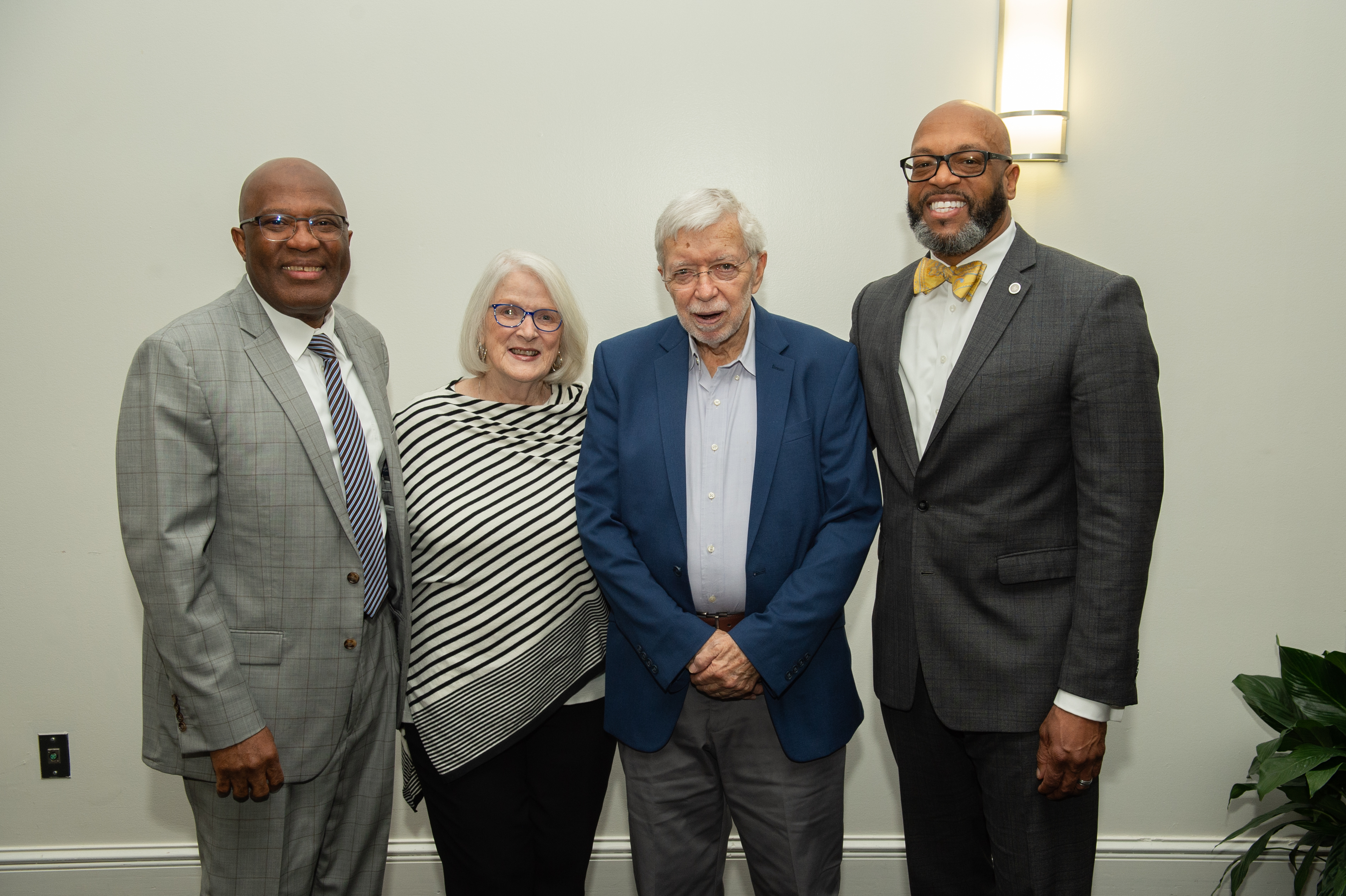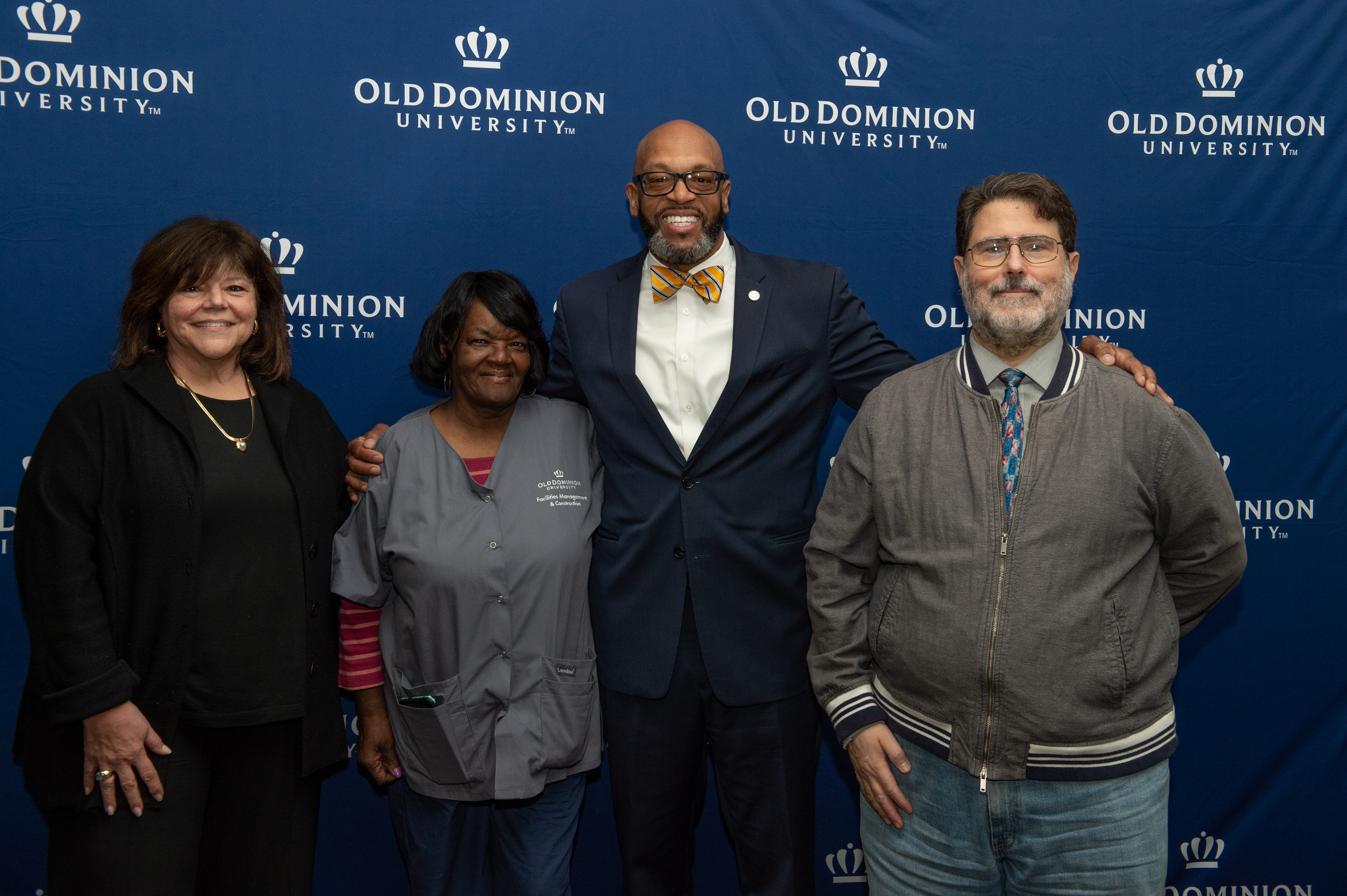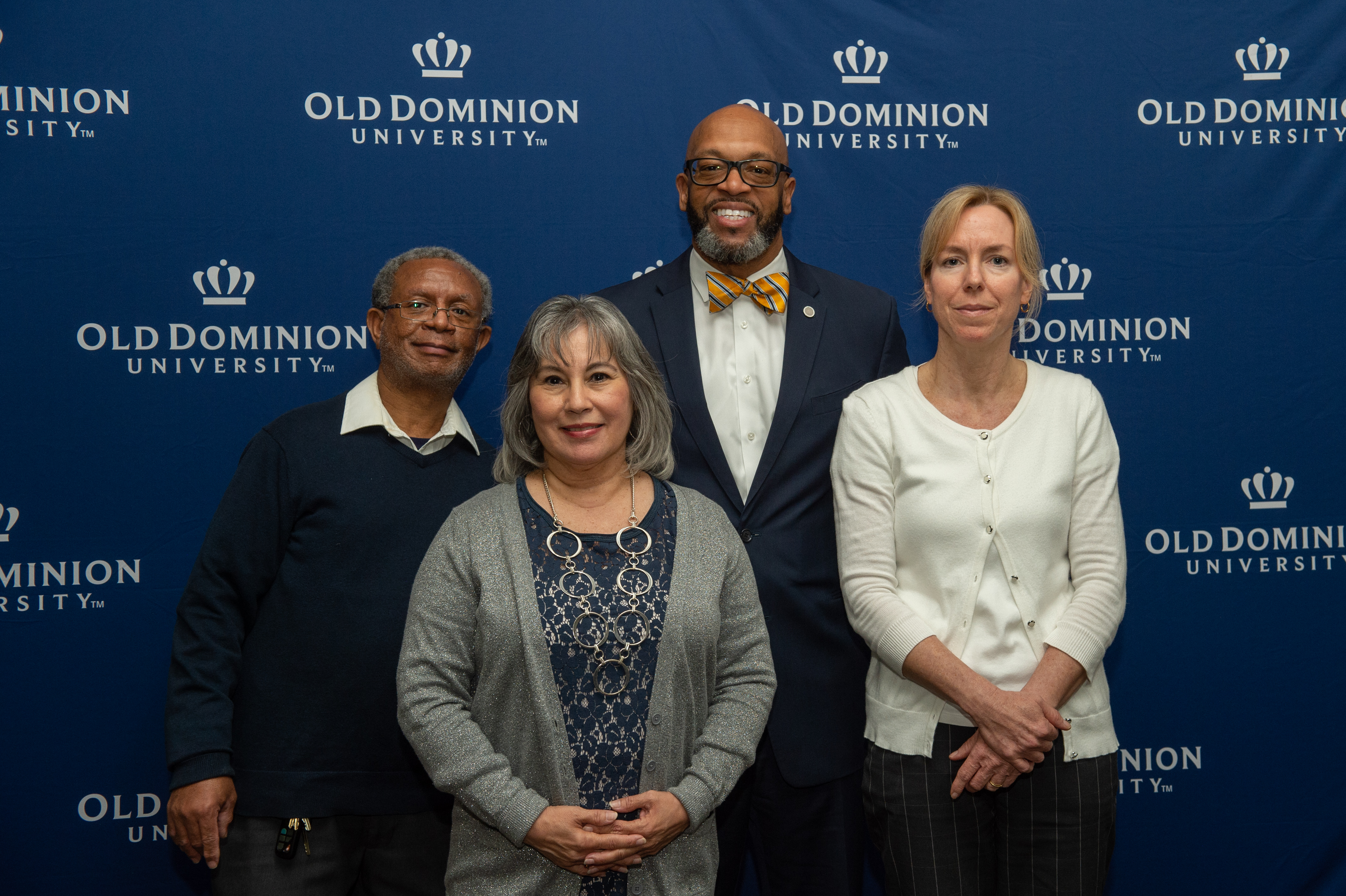 Award-winning actress Angela Bassett receives an honorary degree from President Brian O. Hemphill, Ph.D. Pictured (l-r) Provost Austin Agho, Angela Bassett, BOV Rector Bruce Bradley and President Brian O. Hemphill Ph.D. Photo Chuck Thomas/ODU