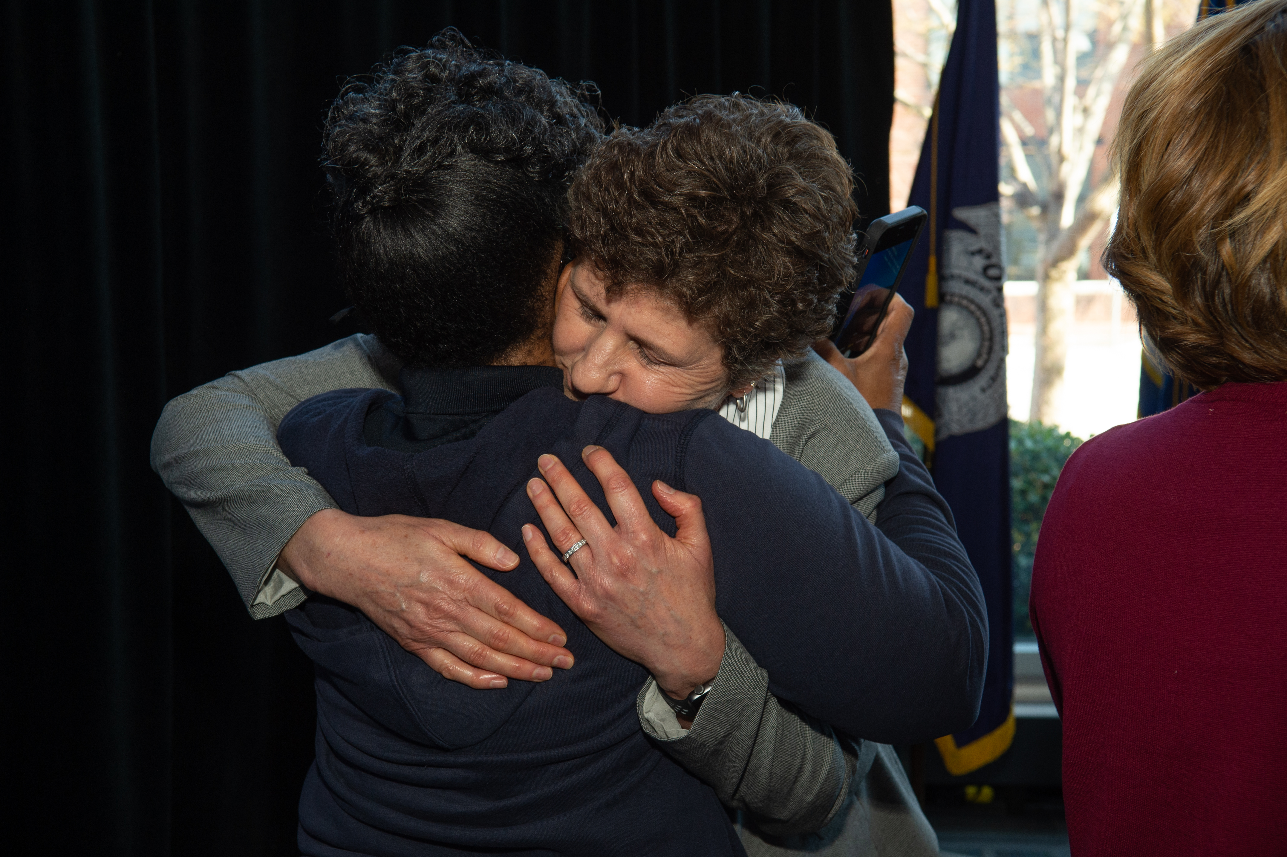These enthusiastic students spot a familiar face in the crowd. Photo Chuck Thomas/ODU
