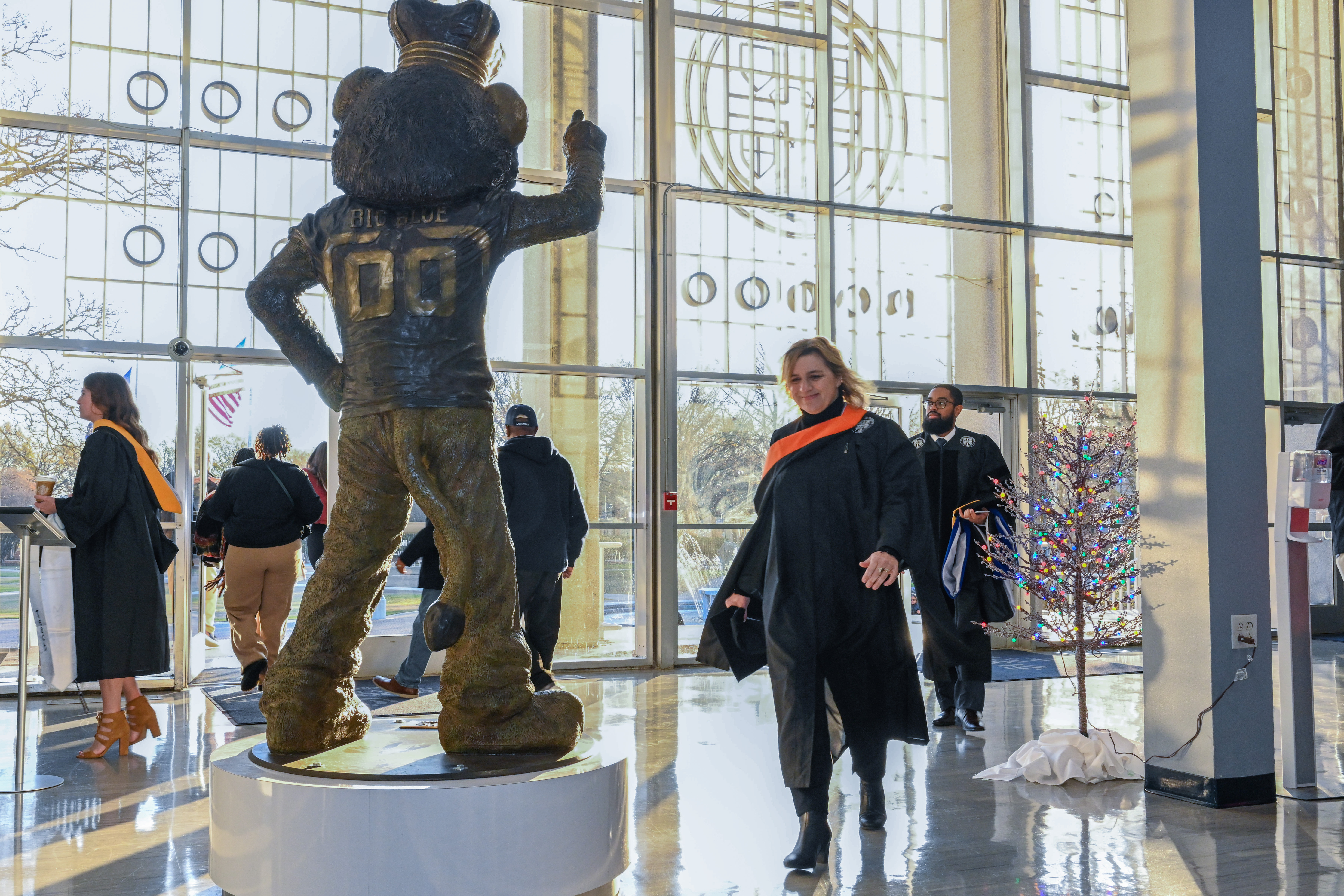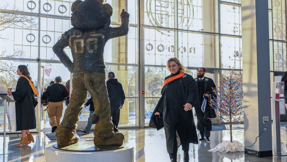A soon-to-be graduate walks into the Webb Center to prepare for graduation. Photo Nicholas Clark/ODU