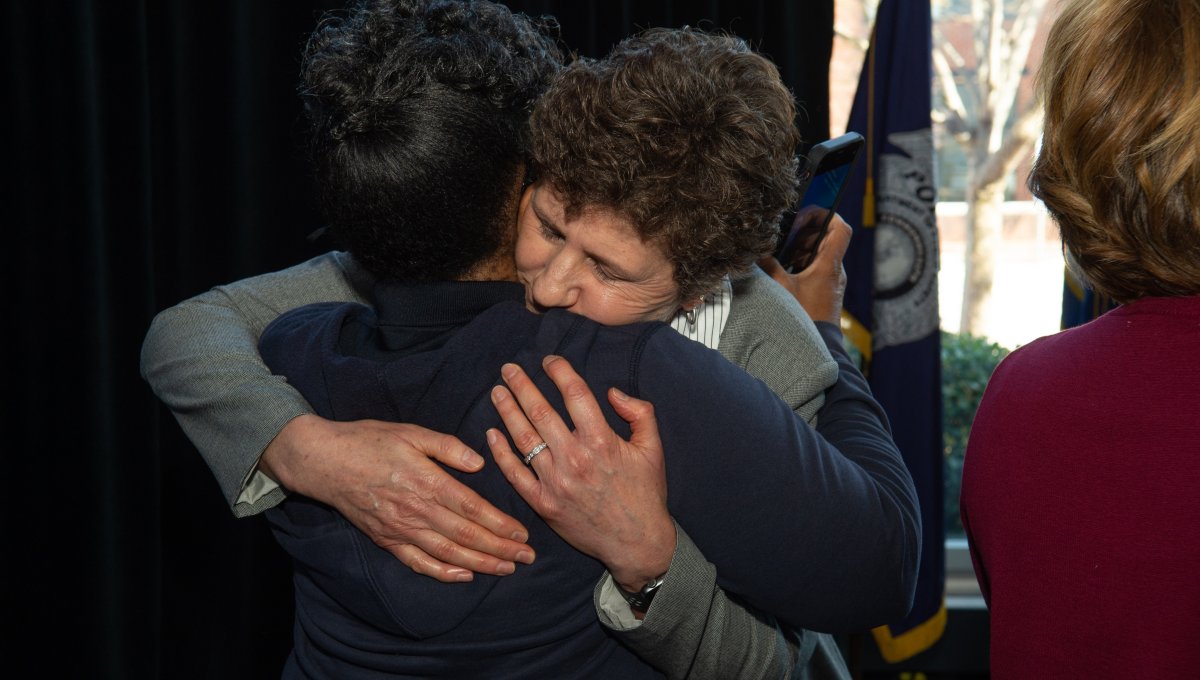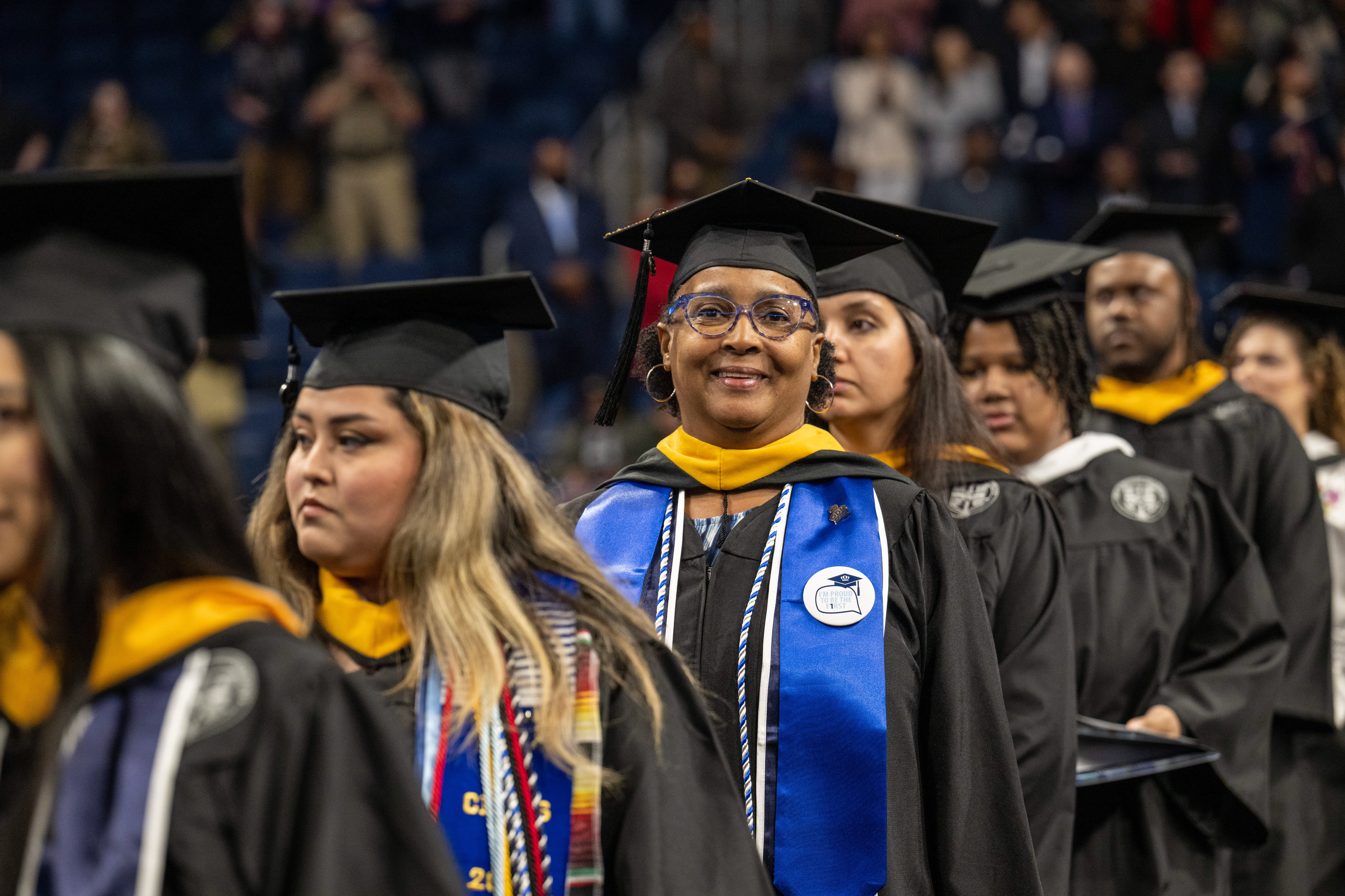 Many first-generation college graduates received “First in the Family” pins from the ODU faculty and staff who themselves were first-generation students. Photo Chuck Thomas/ODU