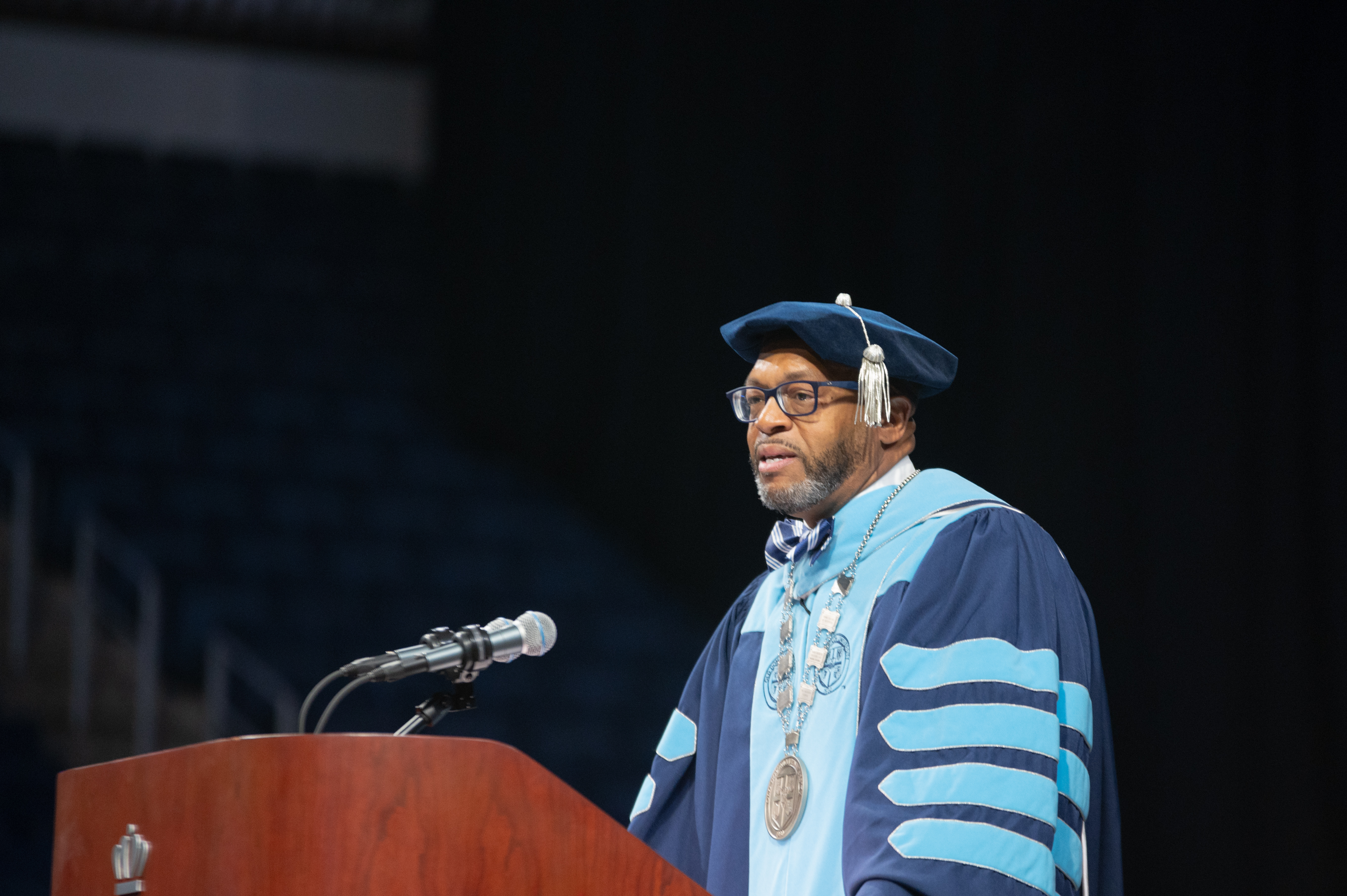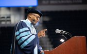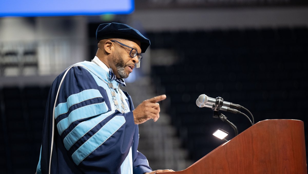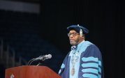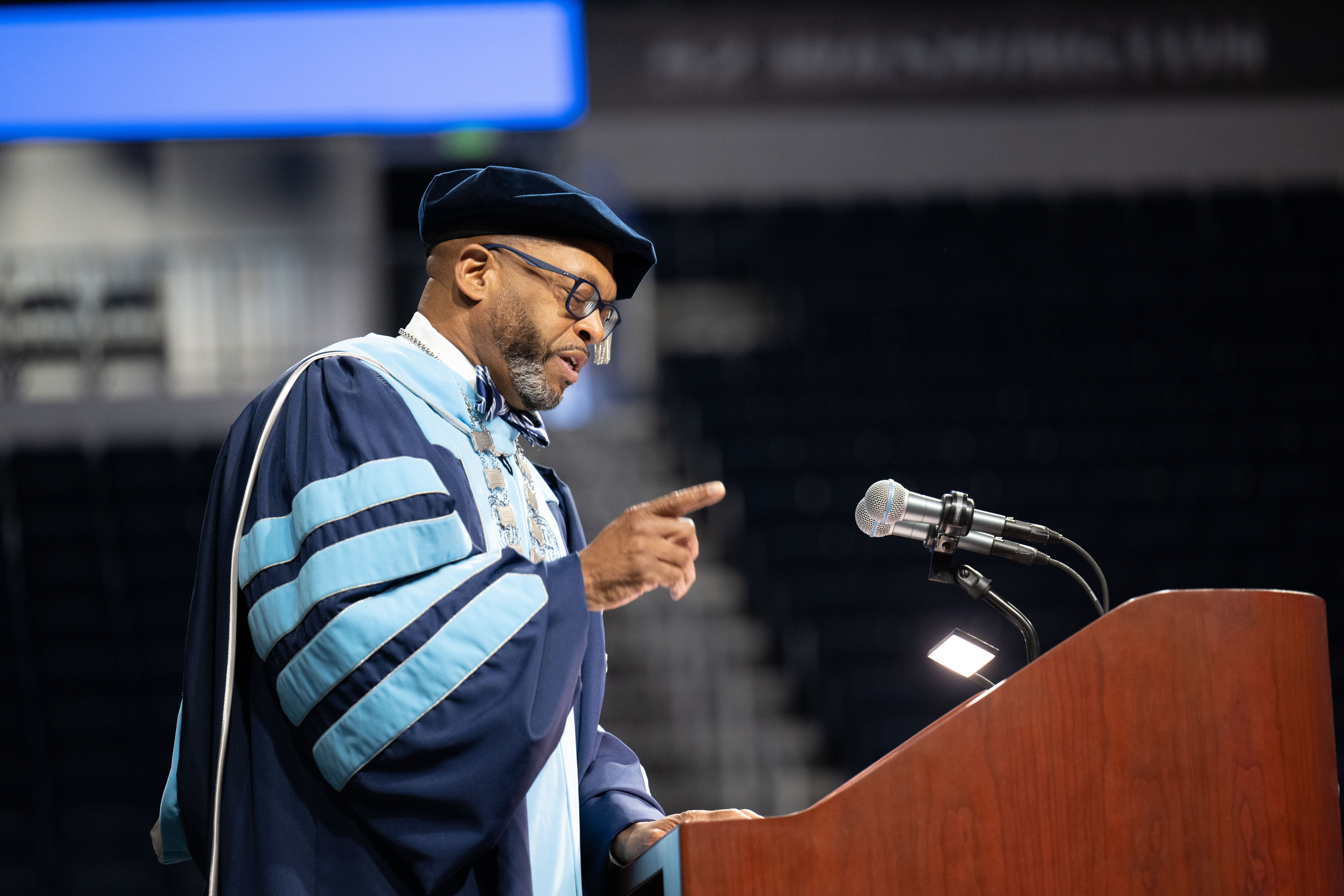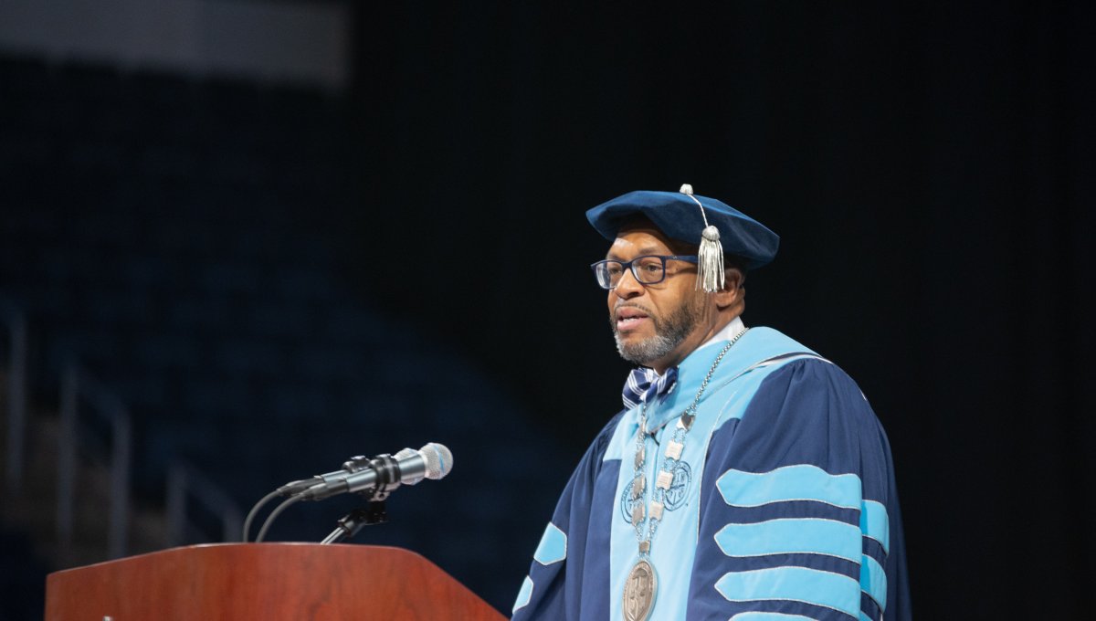 President Brian O. Hemphill Ph.D., speaks at Old Dominion University's commencement exercises May 7 at the Chartway Arena . Photo Chuck Thomas/ODU