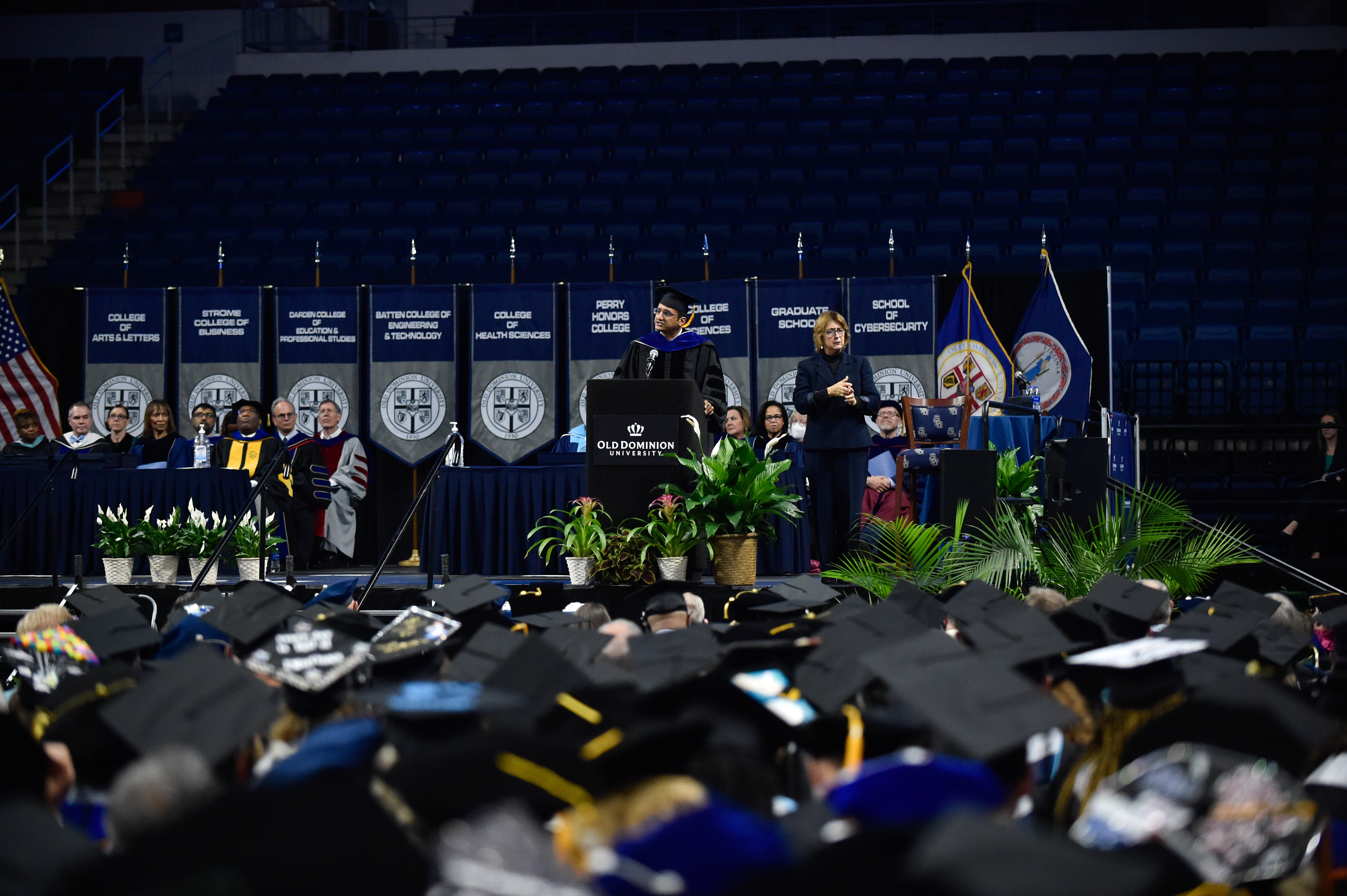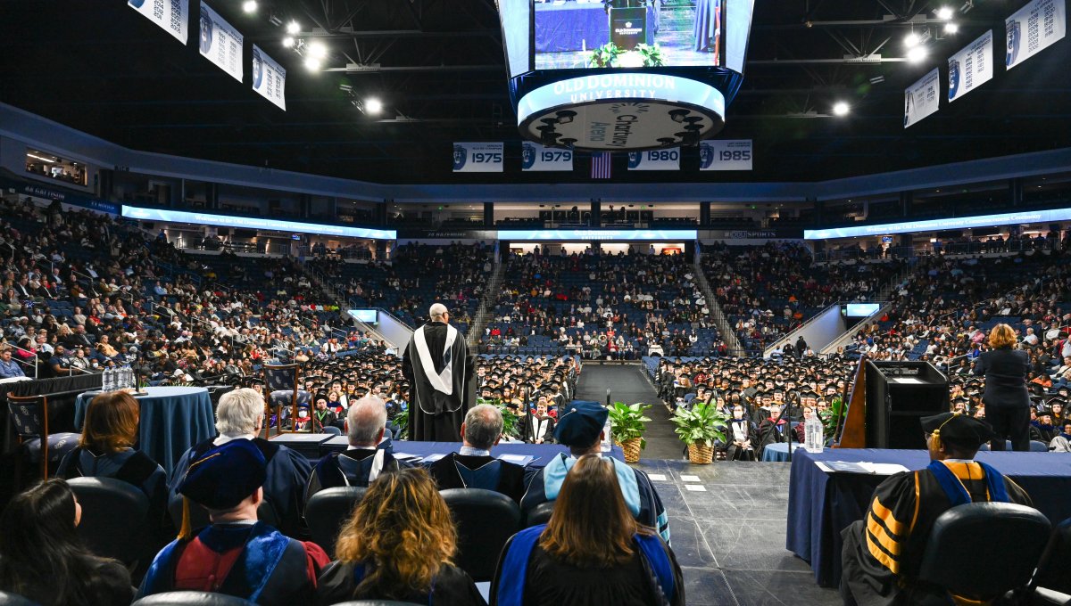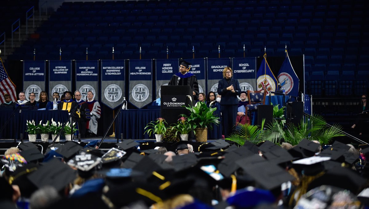 Nearly 2,000 Old Dominion University bachelor’s, master’s and doctoral students attended ceremonies on Dec. 17 at Chartway Arena. Photo Nicholas Clark/ODU