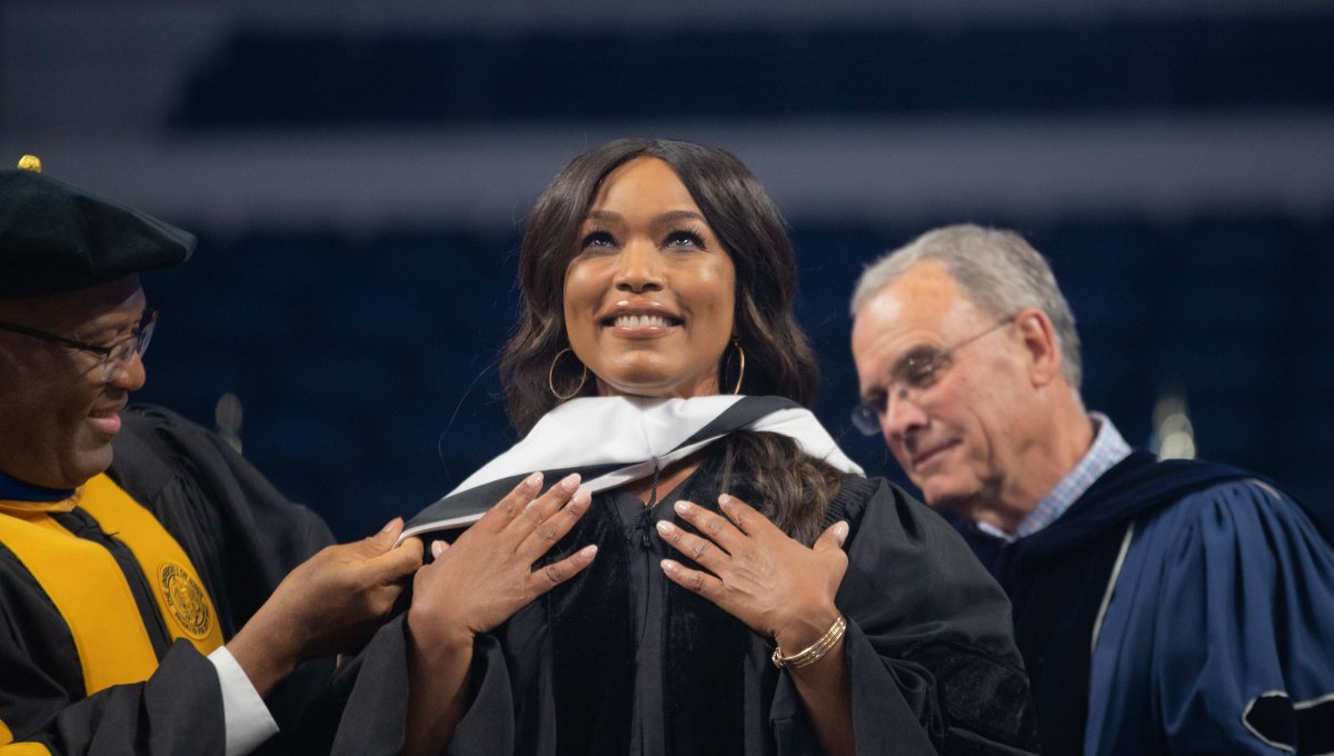 Actress Angela Bassett speaks at Old Dominion University's Class of 2022 graduation. Angela Bassett, known for roles in "Black Panther," "What's Love Got to Do with It," and many other films and shows, serves as keynote speaker at ODU's commencement. Photo Chuck Thomas/ODU.