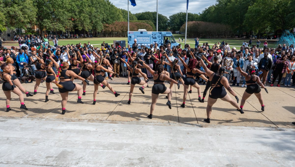 Members of Prestige and Poise perform at activity hour to kick off Homecoming 2022. Photo Chuck Thomas/ODU