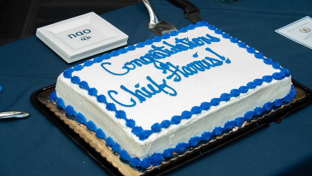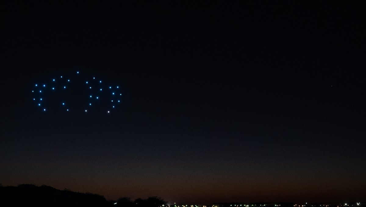 The Office of Alumni Relations sponsored a drone light show at Whitehurst Beach. Photo Nicholas Clark/ODU