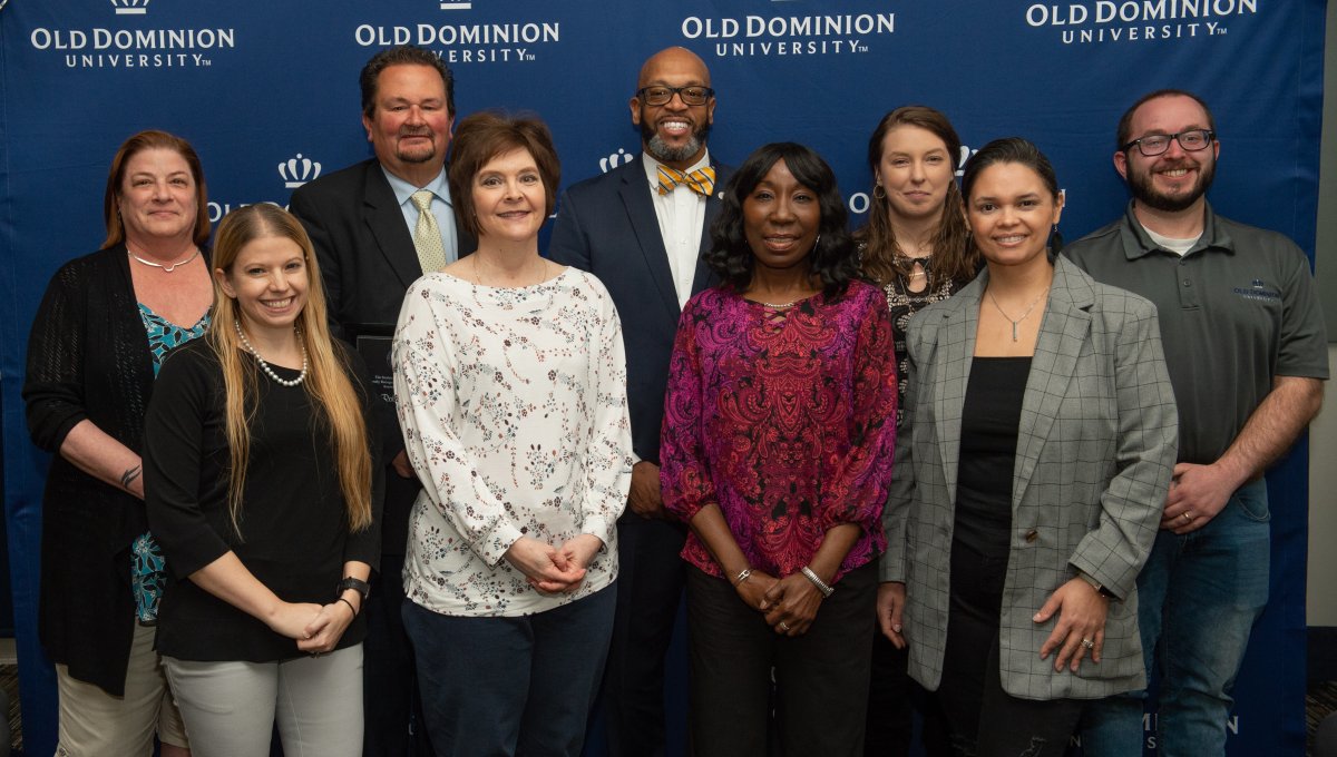 Graduates pose for one final group shot before they go their separate ways. Photo Chuck Thomas/ODU