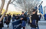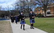 Bagpipers perform as students process to Chartway Arena. Photo Chuck Thomas/ODU
