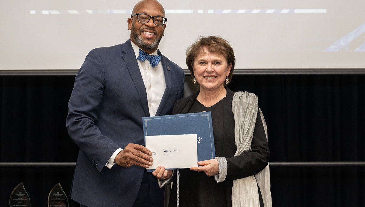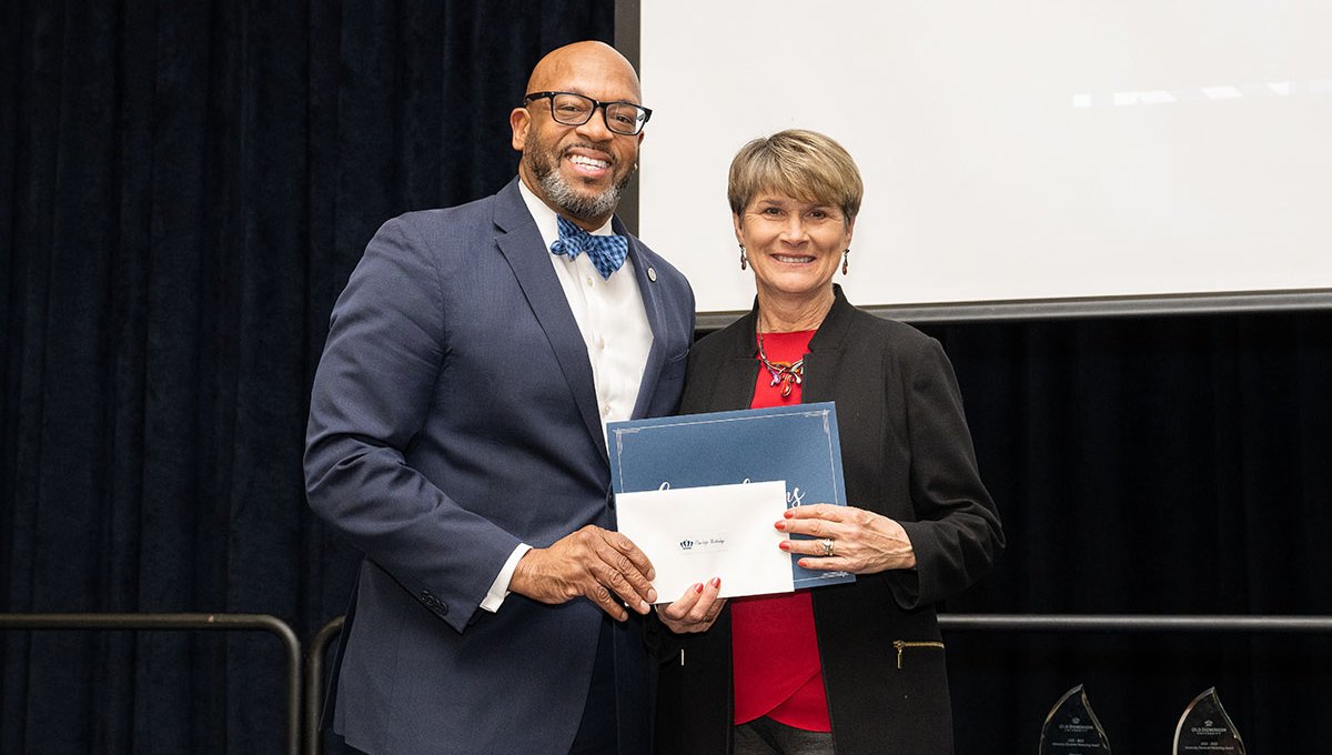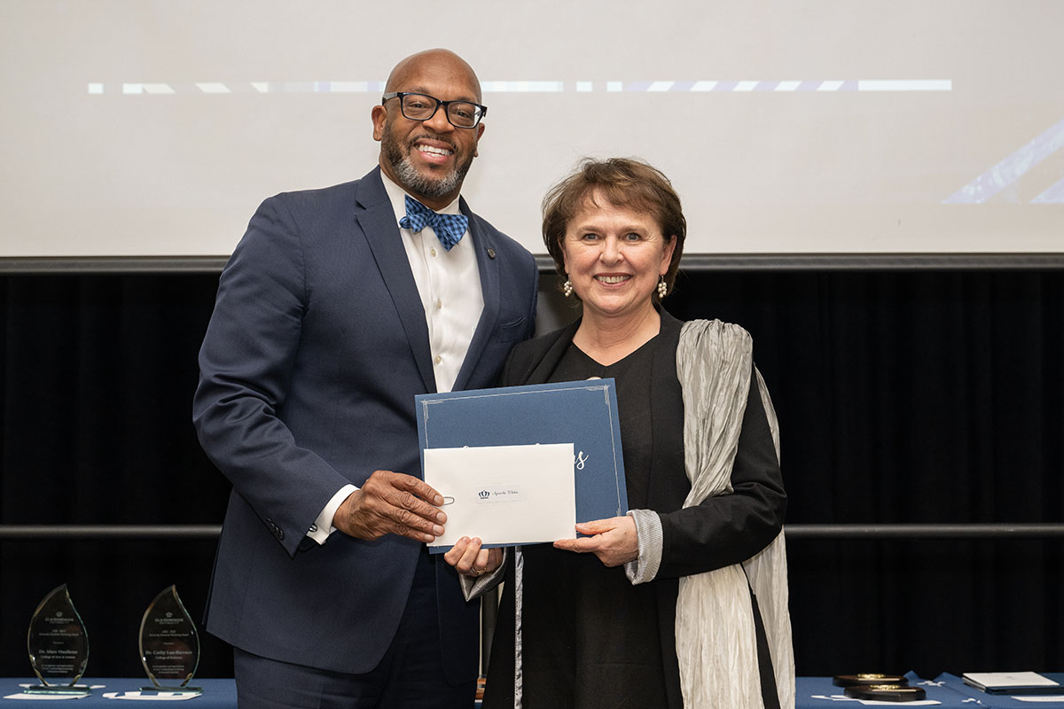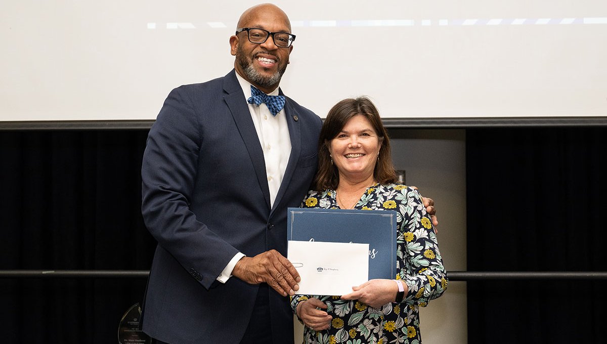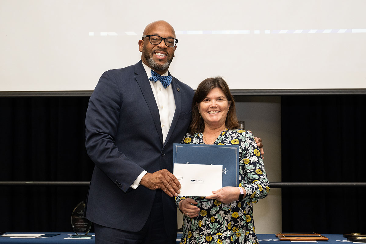 Paige O'Shaughnessy, a professor in the School of Accountancy in the Strome School of Business, was named a University Distinguished Teacher, which recognizes faculty members who are outstanding teachers at the undergraduate level. Only full-time non-tenure-track and non-tenured faculty members are eligible for this honor. Photo Chuck Thomas/ODU