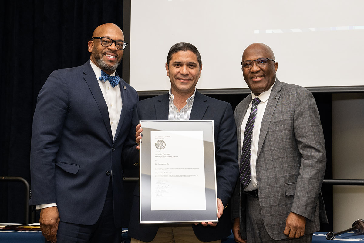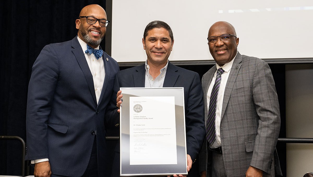 Orlando Ayala, a professor of mechanical engineering technology in the Frank Batten College of Engineering and Technology, won the A. Rufus Tonelson Faculty Award, which is given annually to recognize outstanding achievement in teaching, research and service at ODU. Photo Chuck Thomas/ODU(