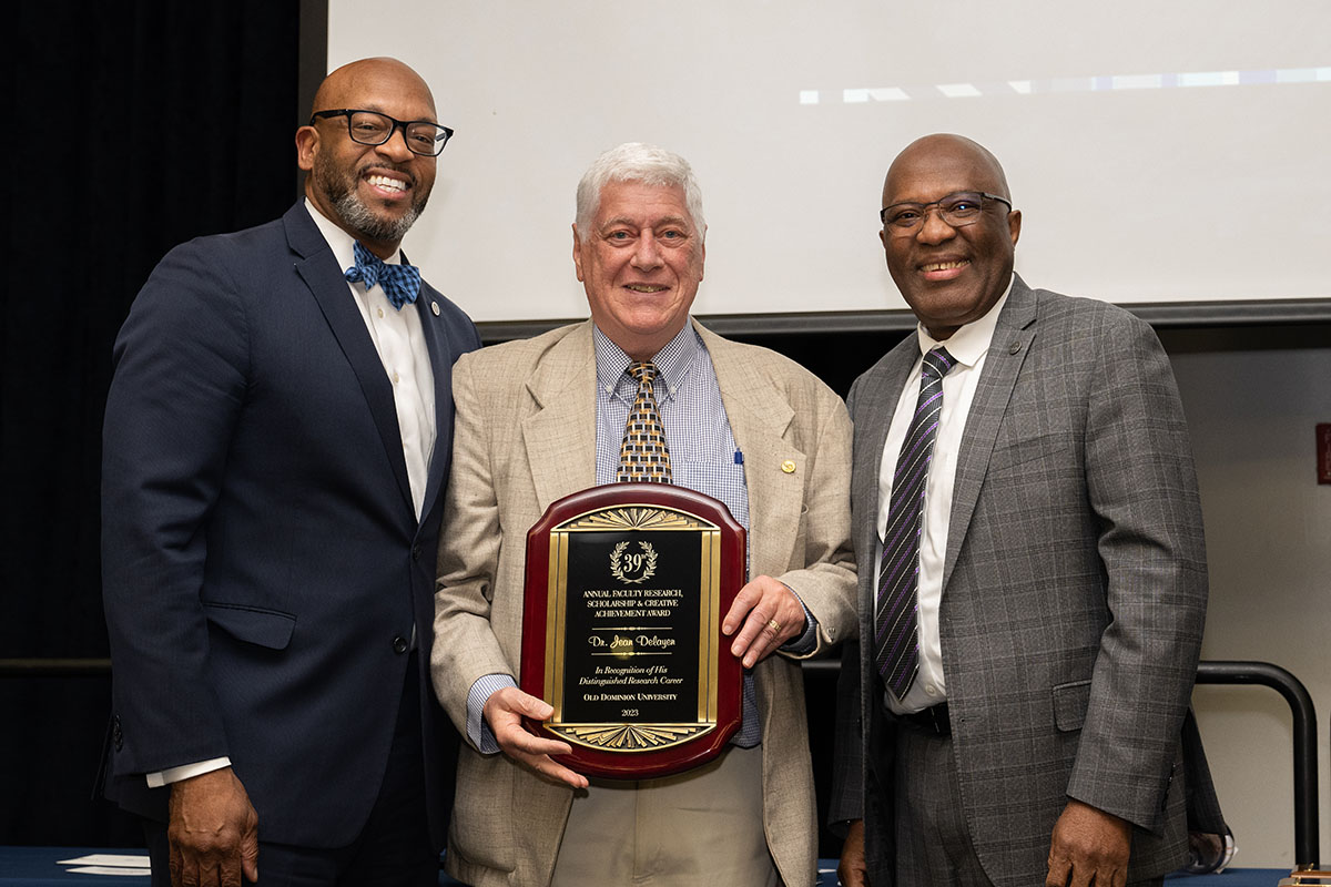 Jean Delayen, a physics professor in the College of Sciences, was awarded the Faculty Research, Scholarship and Creative Achievement Award. Photo Chuck Thomas/ODU