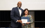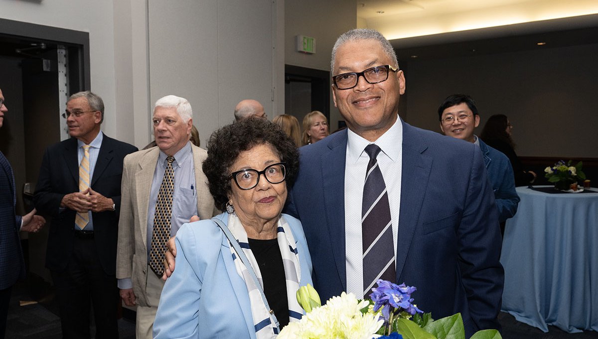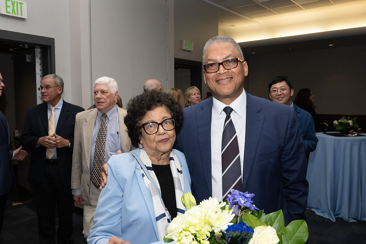 Alonzo Brandon (right) poses for a photo with Nina Brown, who has served 55 years at Old Dominion University. Photo Chuck Thomas/ODU
