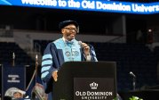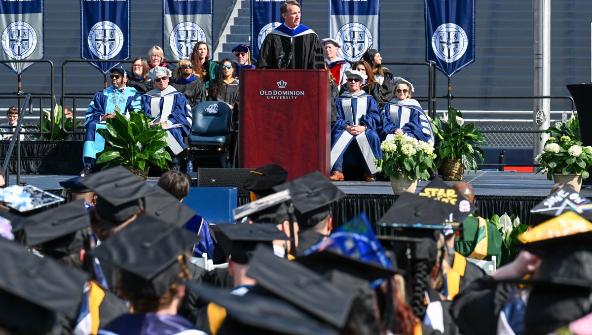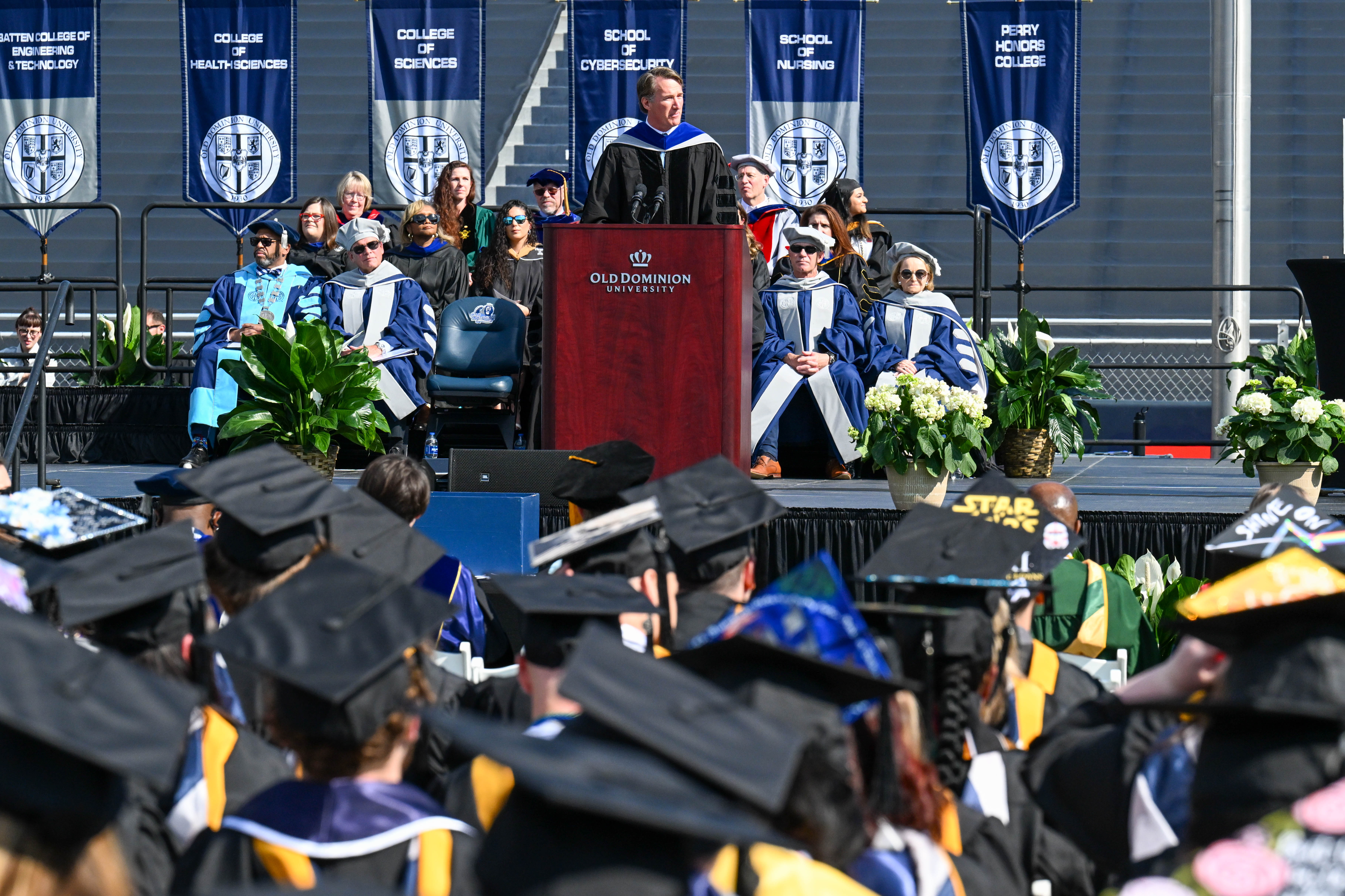 Virginia Gov. Glenn Youngkin addresses graduates on May 6 at S.B. Ballard Stadium. Photo Chuck Thomas/ODU