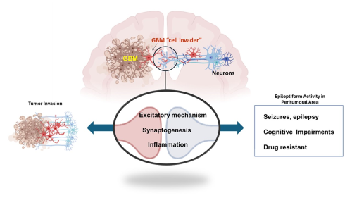 This suggests that the GBM-neuron interaction could meditate tumor infiltration and proliferation. We are using behavior and electrophysiology approaches in the in vivo translational model of GBM, including an in vitro glioma/neuron co-culture following molecular and immunohistochemistry techniques. We will pave the way to discovering an early diagnosis and effective treatments for GBM, which are unmet medical needs.