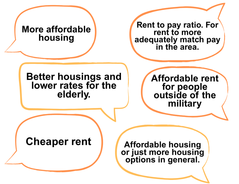 Similar to the responses from last year’s Life in Hampton Roads survey, affordable housing was also frequently mentioned as a way to improve the quality of life in the region. Respondents shared: