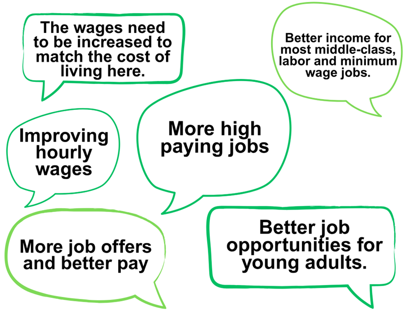 Respondents also answered that there was a need for better paying jobs as well as more job opportunities in the region, with many stating: