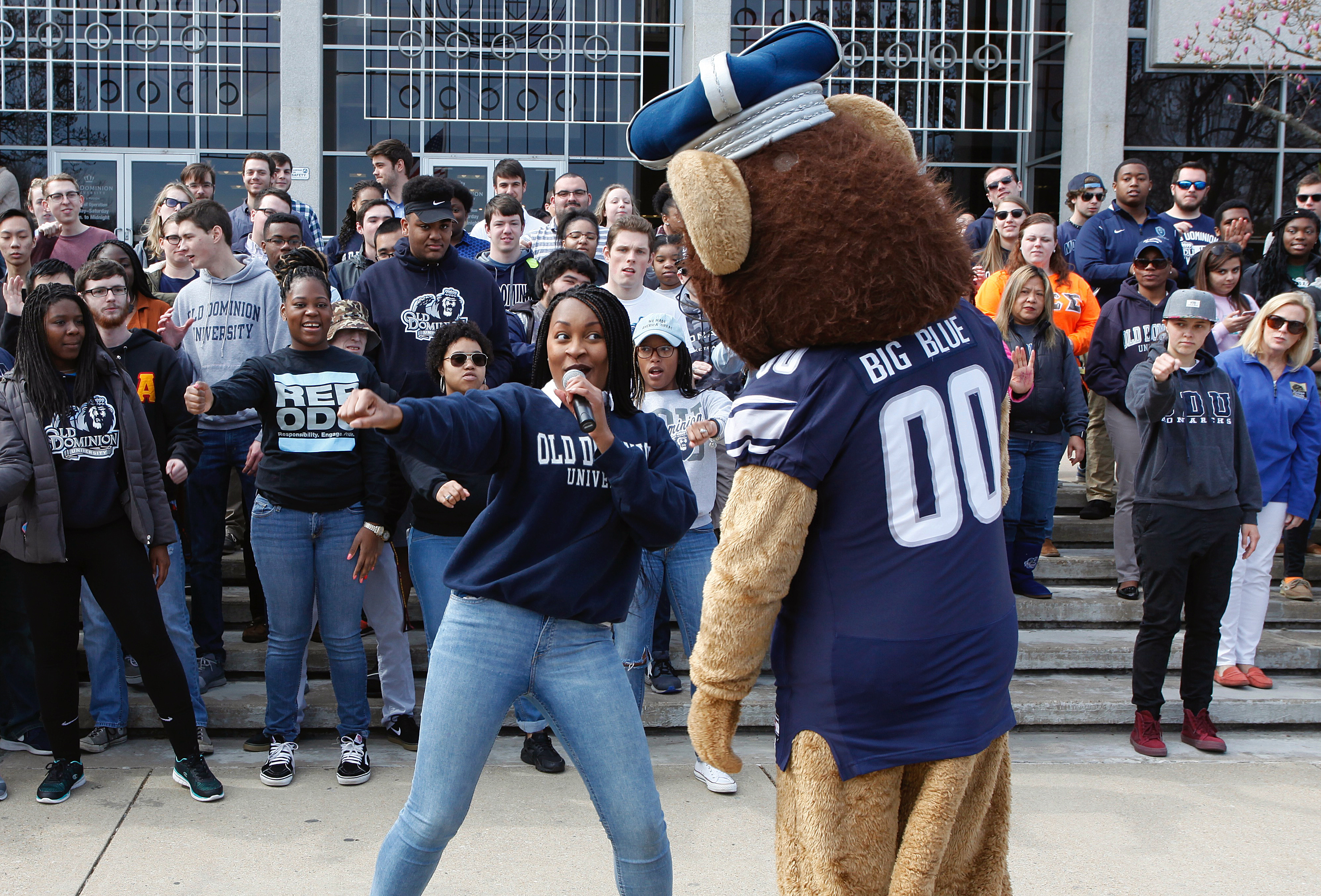 A word of mouth tradition that eventually was enacted by President Roseann Runte and resolved by the Student Senate. All members of the University community are asked to wear either school colors (blue and silver) or ODU apparel every Friday regardless if they are on or off-campus.