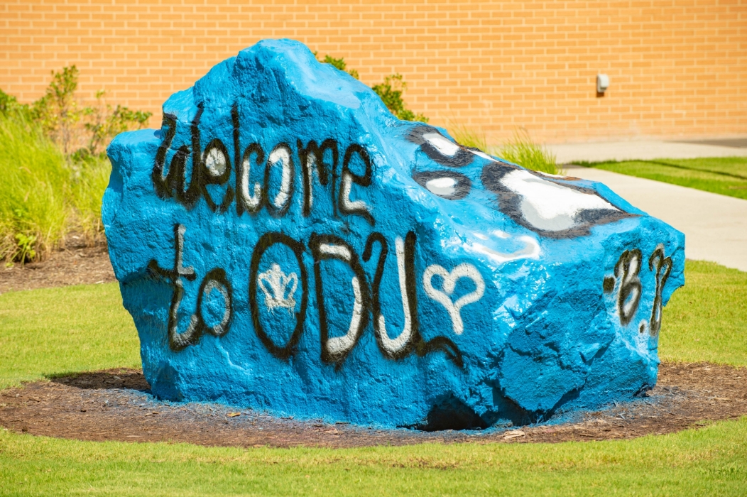 Dominion Rock, also know as the pride rock, arrived at Old Dominion in 2017. This "canvas" is an avenue of expression for students to show school spirit. Student groups or individual students can paint a message or symbols promoting a particular cause or event.