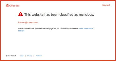 When you click on the link, ATP evaluates the web address. If it's safe, you'll be taken directly to the intended site. If the link is NOT safe, you'll be blocked from the site with a warning message like this.
