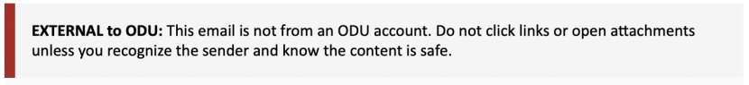 So we've added the following notice to the top of every email that comes in from outside of ODU's email system: