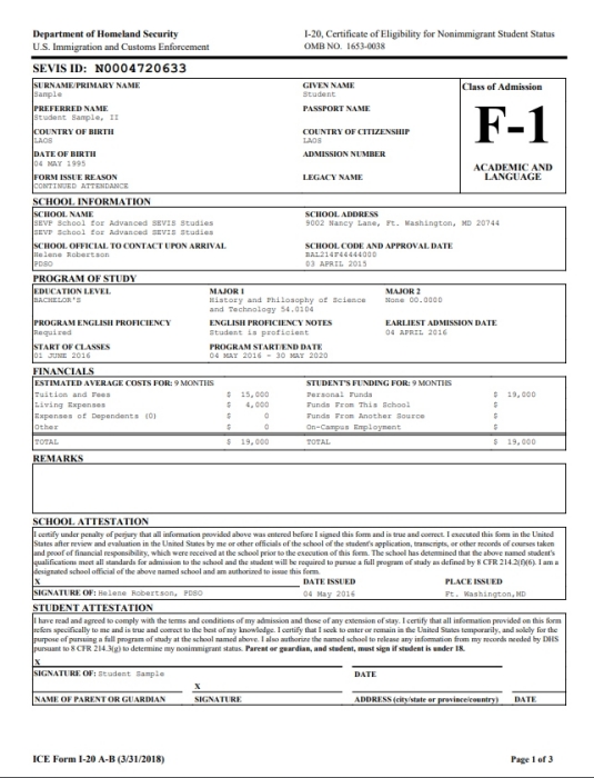 Documentation used for I-9 validation will include the student's passport, as well as the EAD card's number and expiration date. Further documentation examples of the EAD (also known as Employment Authorization Document or I-766), I-94 card and I-20 F-1 Student visa document can be found below.