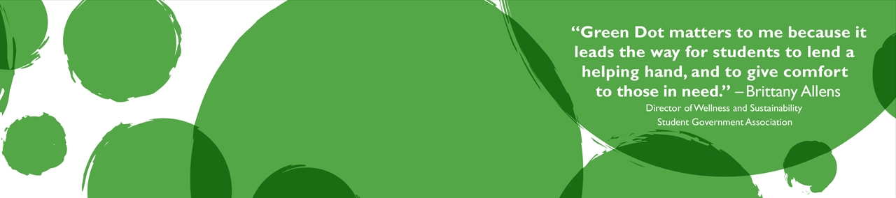 Through faculty and staff presentations and student bystander training, Green Dot shows how each of us can choose to replace moments of potential harm (red dots) with moments of safety and support (green dots). Ultimately, ODU's Green Dot iniative fosters a campus climate where all Monarchs can pursue their college dreams feeling respected and valued.